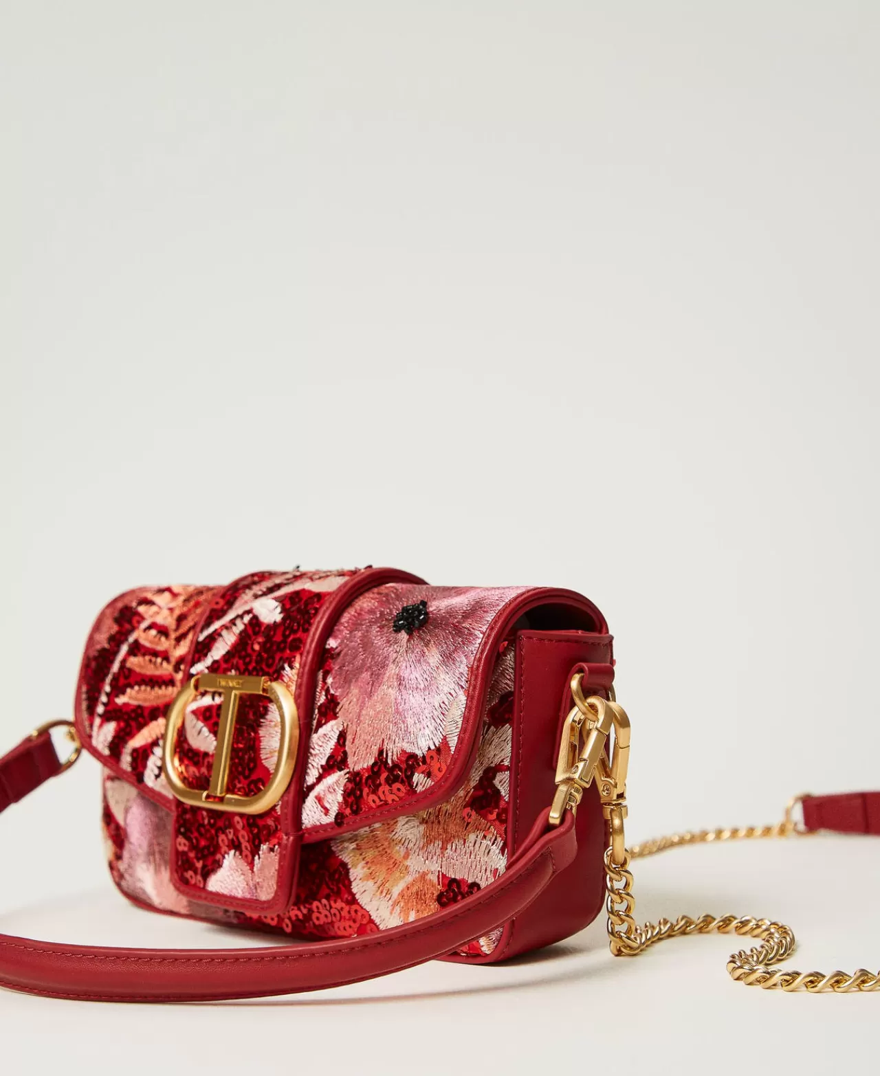 Borse A Mano | Borse A Spalla | TWINSET Milano Borsa A Tracolla ‘Amie’ Piccola Con Ricamo Macro Flowers Rosso / Red Plum