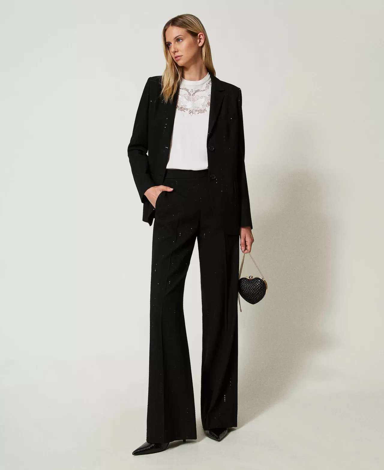 Giacche E Piumini | Blazer | TWINSET Milano Giacca Blazer In Panno Con Paillettes Nero