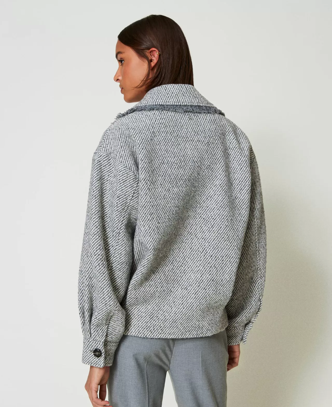 Giacche E Piumini | TWINSET Milano Caban Doppiopetto In Panno Bicolor Bicolor Grigio Fumè / White