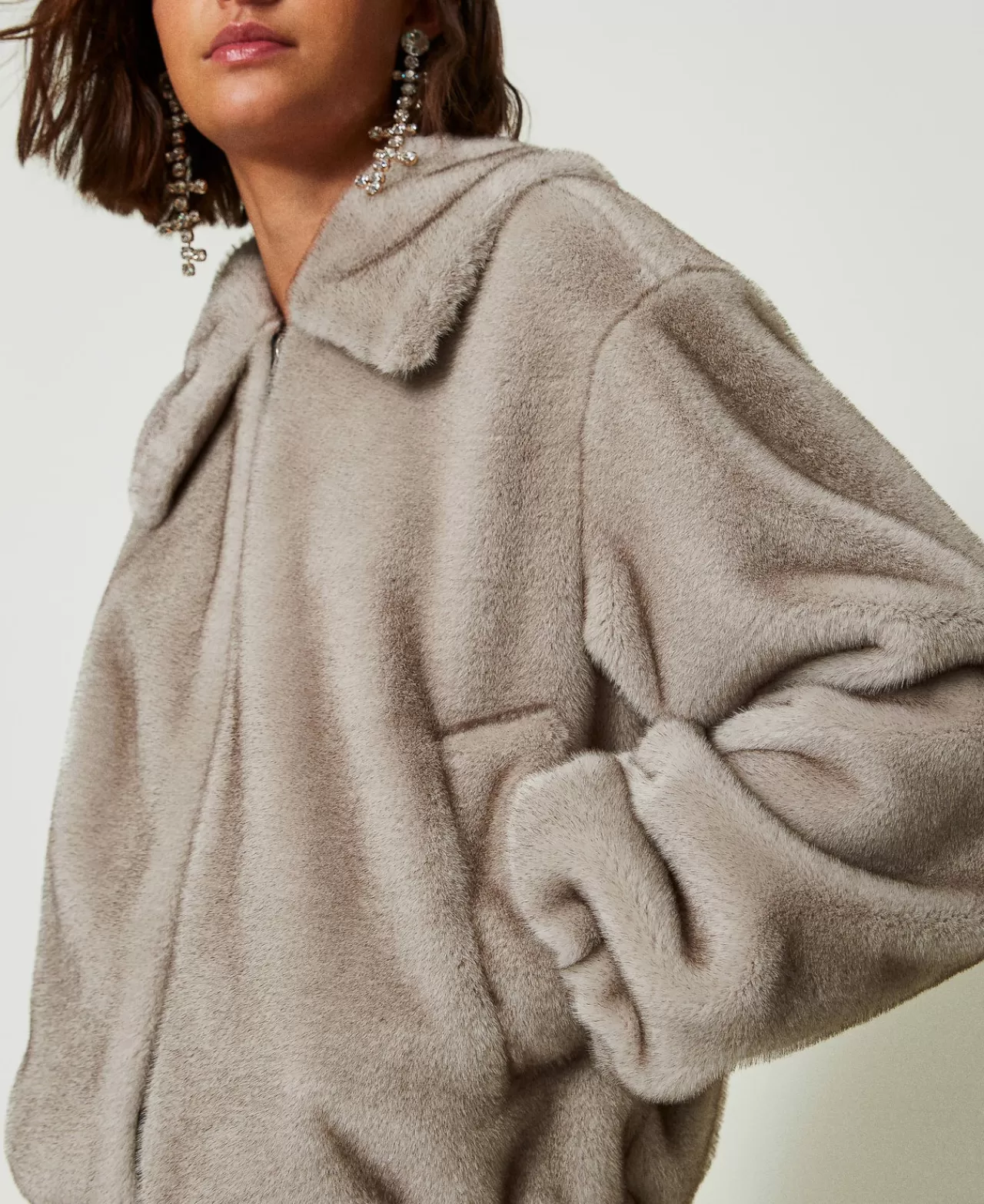 Giacche E Piumini | TWINSET Milano Giacca Corta In Faux Fur Grigio Fumè
