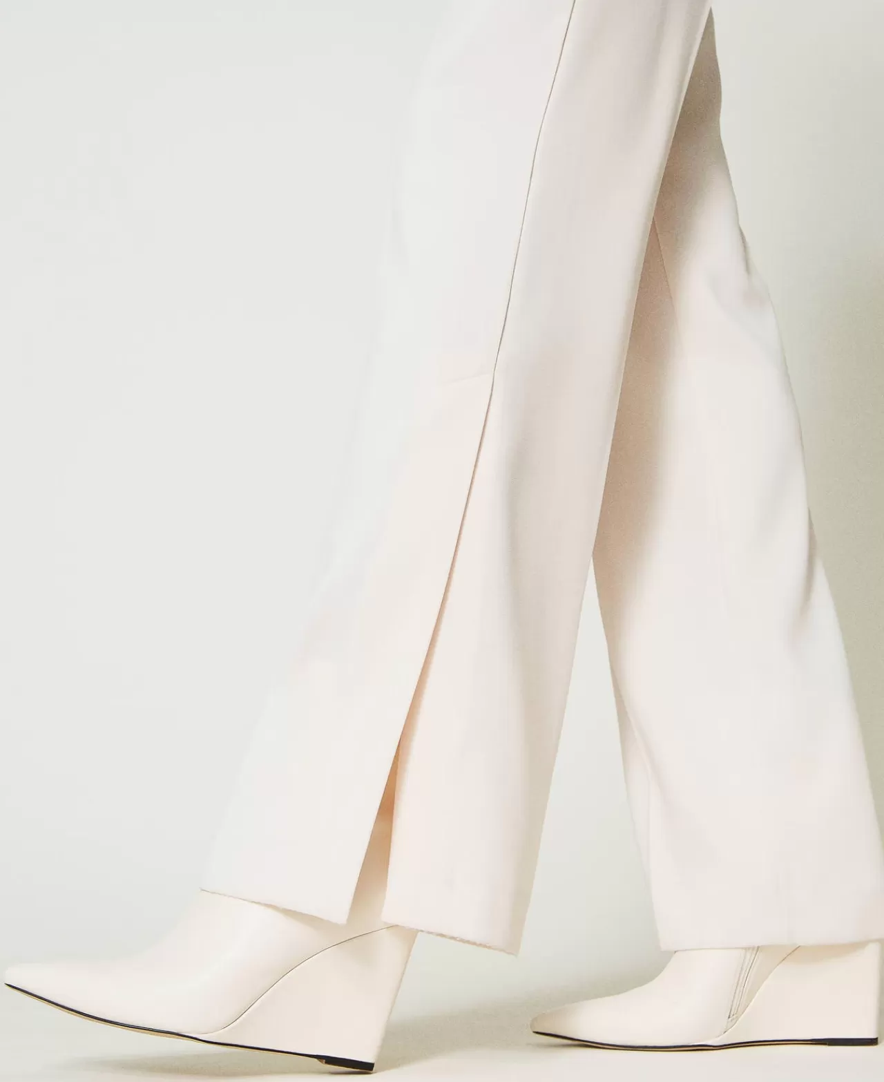 Pantaloni Eleganti | Pantaloni Dritti E A Sigaretta | TWINSET Milano Pantaloni Straight Leg Con Spacchi Bianco “Old White”