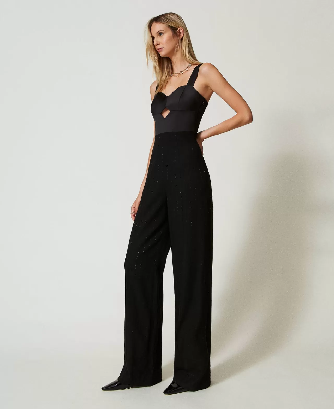 Tute | Vestiti Da Cerimonia | TWINSET Milano Tuta In Raso E In Panno Con Paillettes Nero