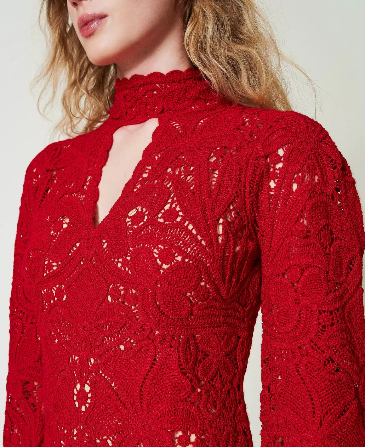 Vestiti Da Cerimonia | Vestiti Eleganti | TWINSET Milano Abito Corto In Maglia Crochet A Fiori Rosso Veneziano