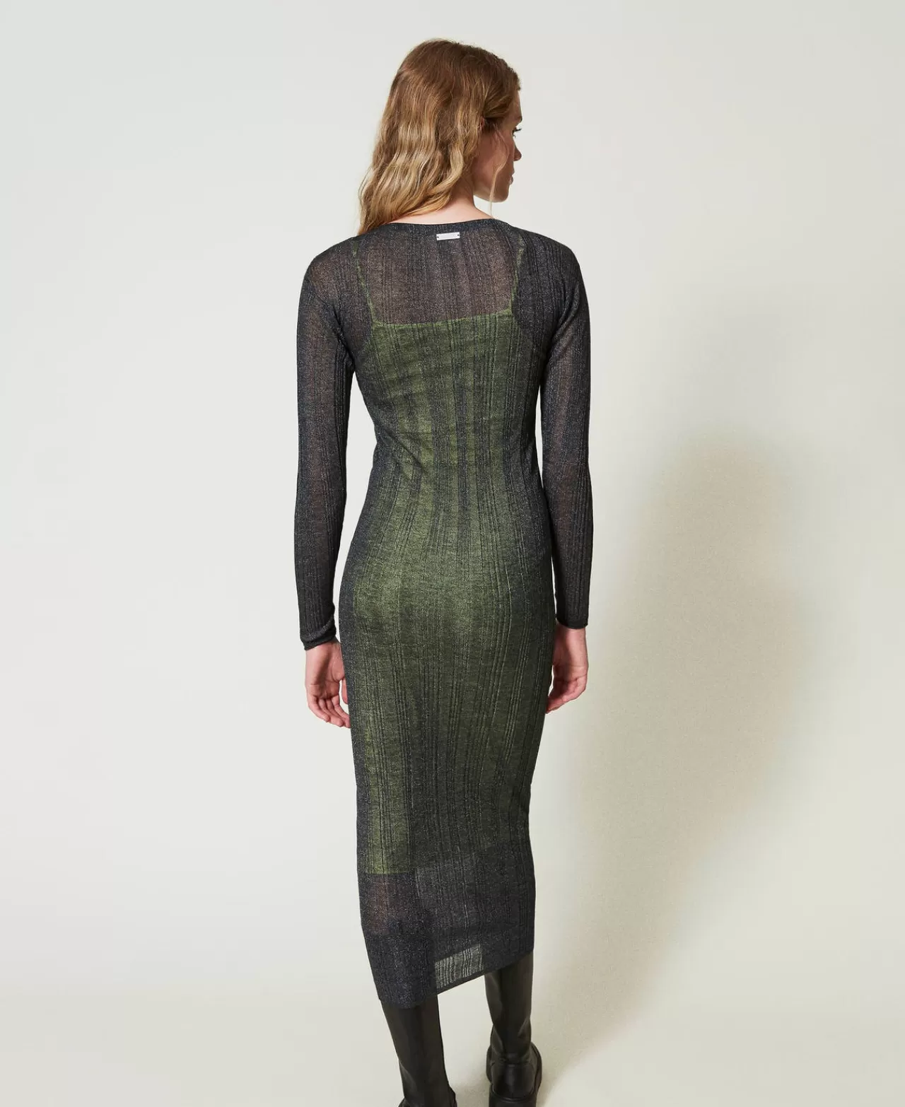 Vestiti In Maglia | Vestiti Lunghi | TWINSET Milano Abito Lungo Fitted In Maglia A Costine Grigio “Blackened Pearl”