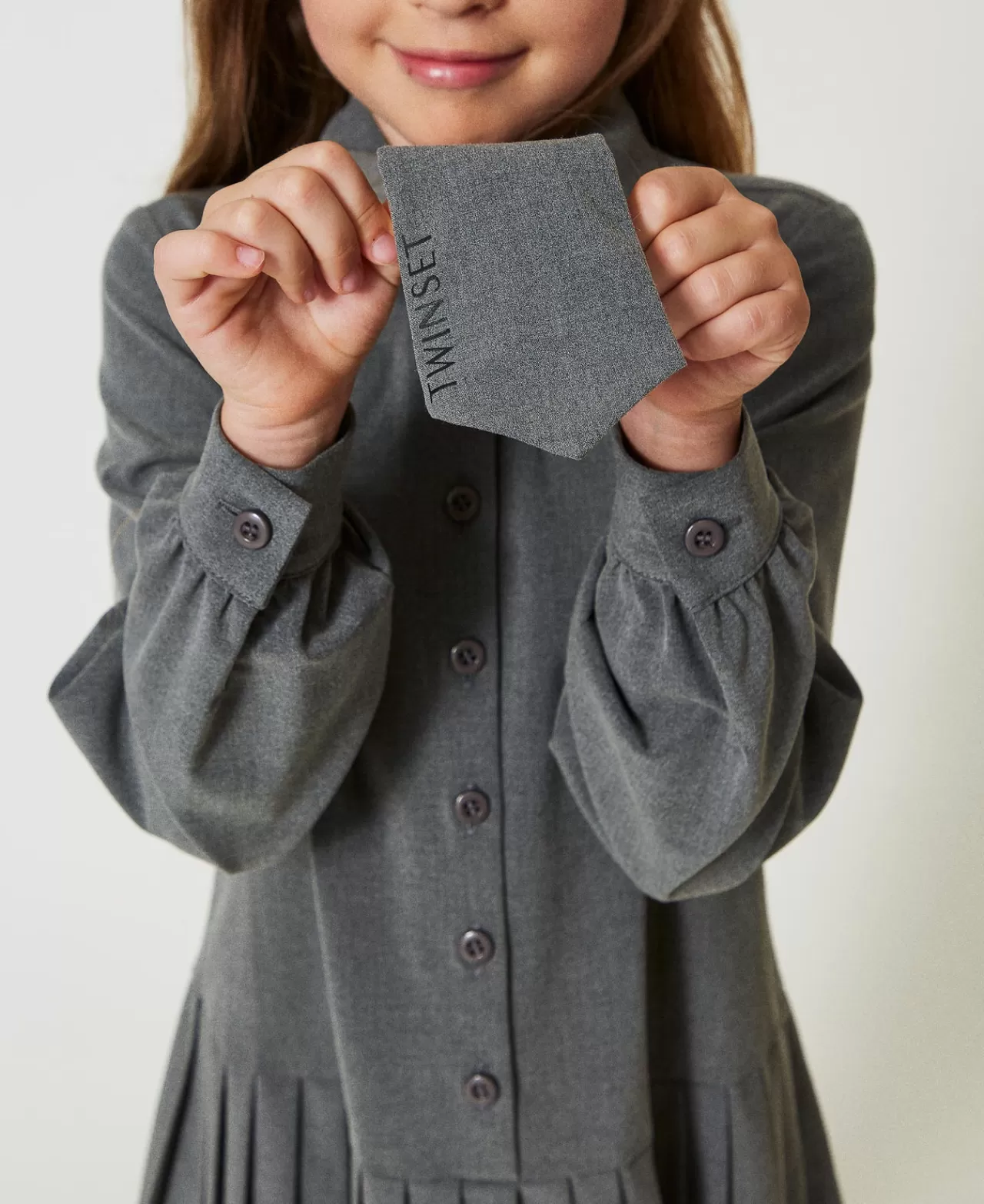 Vestiti | TWINSET Milano Abito Corto In Flanella Con Cravatta Grigio Medio Melange
