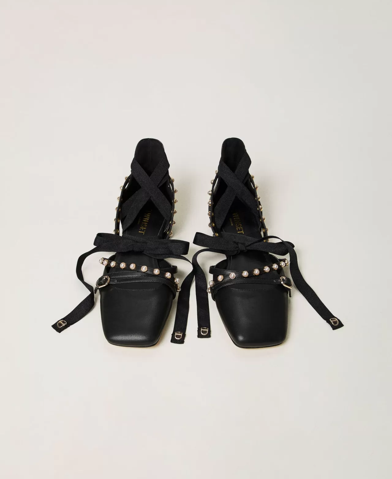 Ballerine E Mocassini | Scarpe Basse | TWINSET Milano Ballerine Con Perle E Nastri Nero