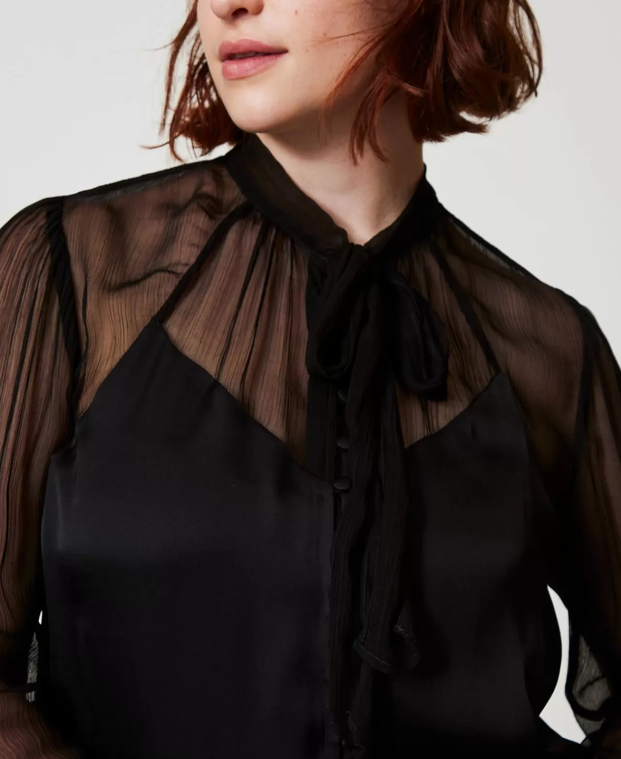 Bluse E Camicie | TWINSET Milano Camicia In Raso E Chiffon Nero