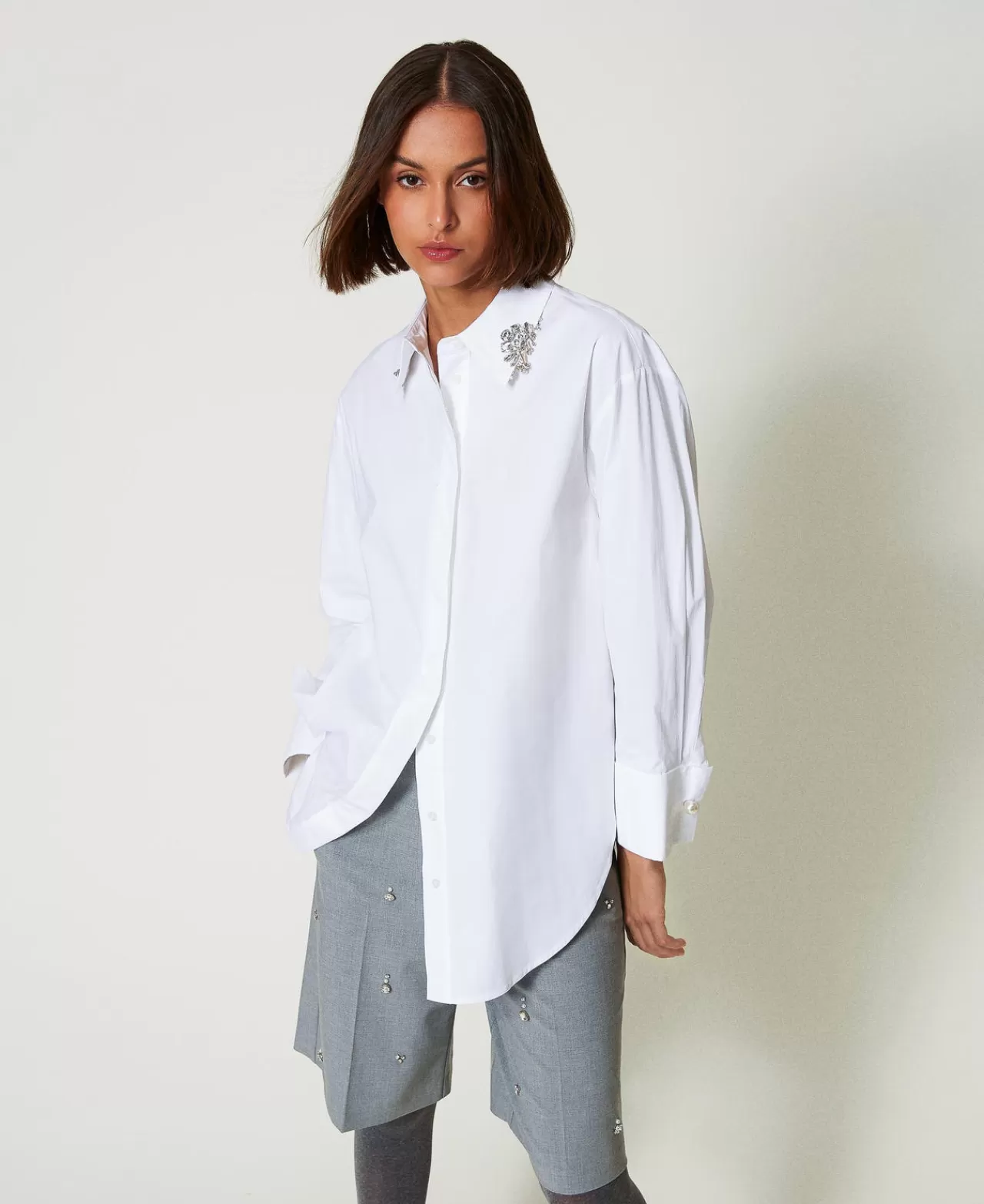 Bluse E Camicie | TWINSET Milano Camicia Over In Popeline Con Ricami Bianco “Papers”