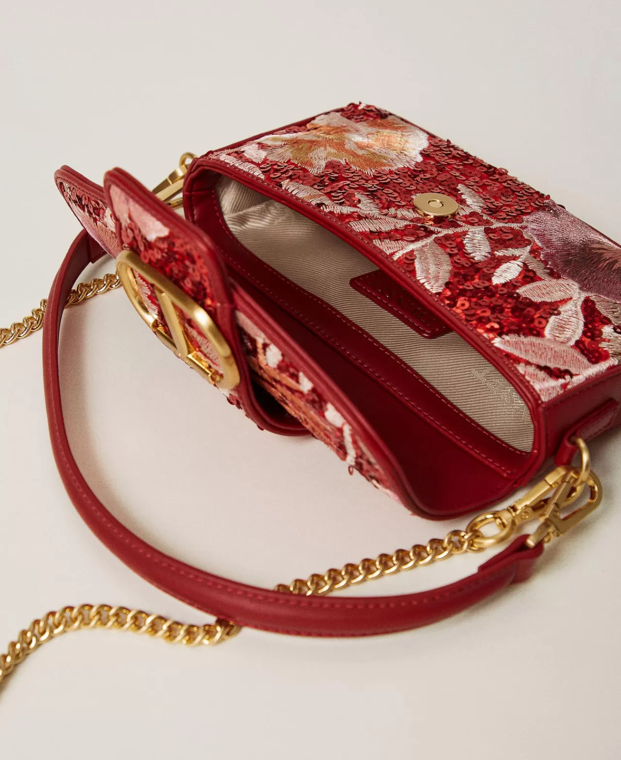 Borse A Mano | Borse A Spalla | TWINSET Milano Borsa A Tracolla ‘Amie’ Piccola Con Ricamo Macro Flowers Rosso / Red Plum