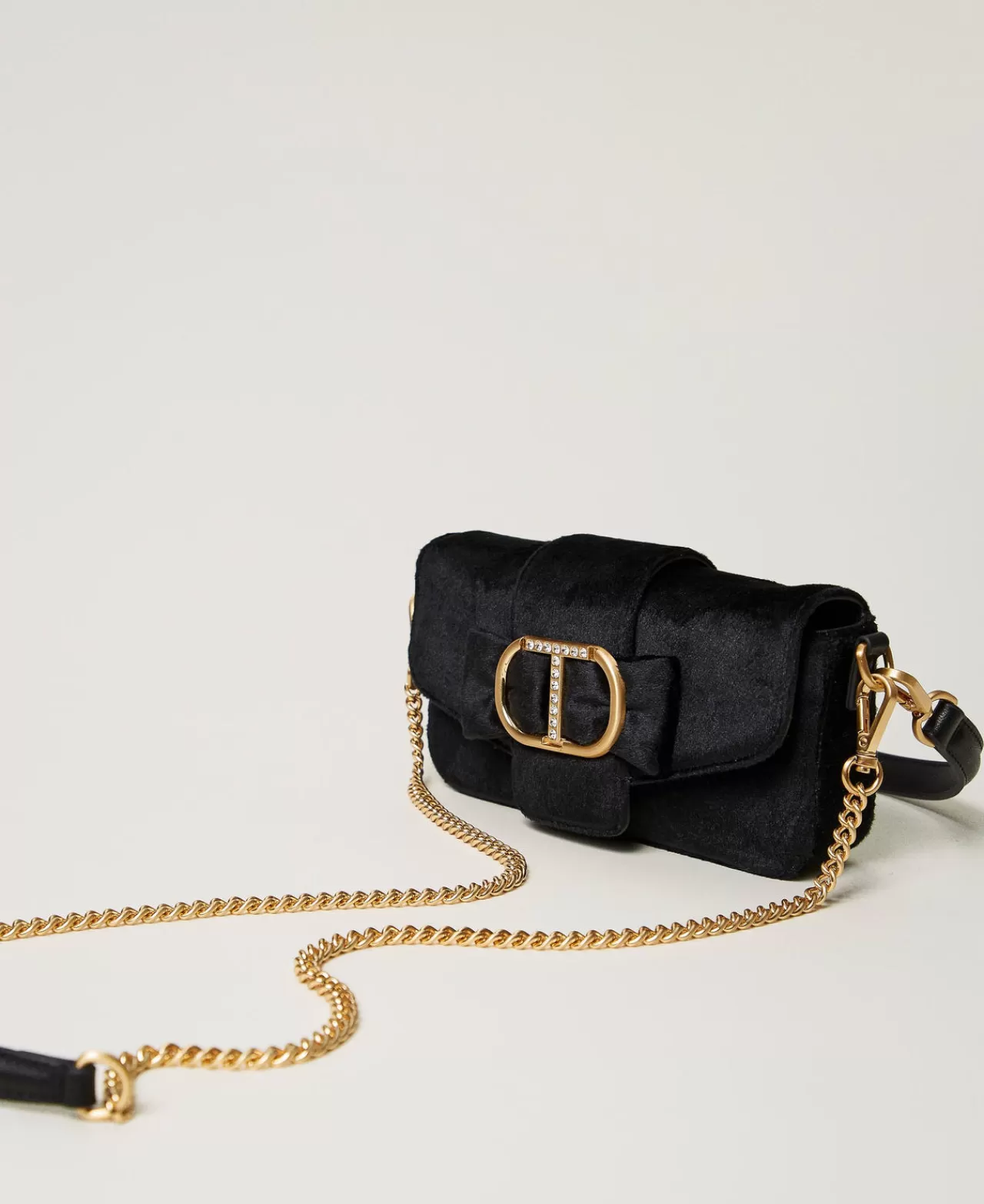 Borse A Mano | Borse A Spalla | TWINSET Milano Borsa A Tracolla ‘Amie’ Piccola In Velluto Ricamato Nero