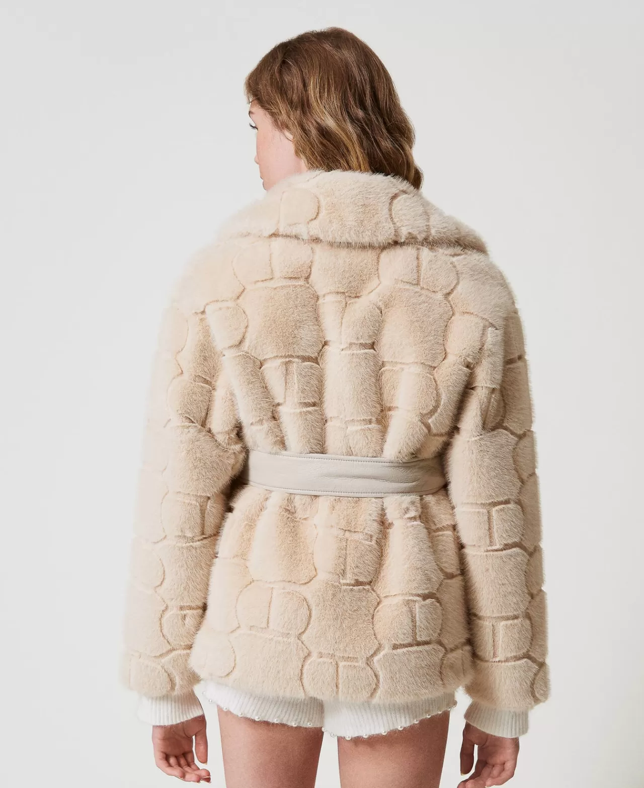Cappotti E Trench | TWINSET Milano Cappotto Corto In Faux Fur Con Oval T Bianco “White Cream”