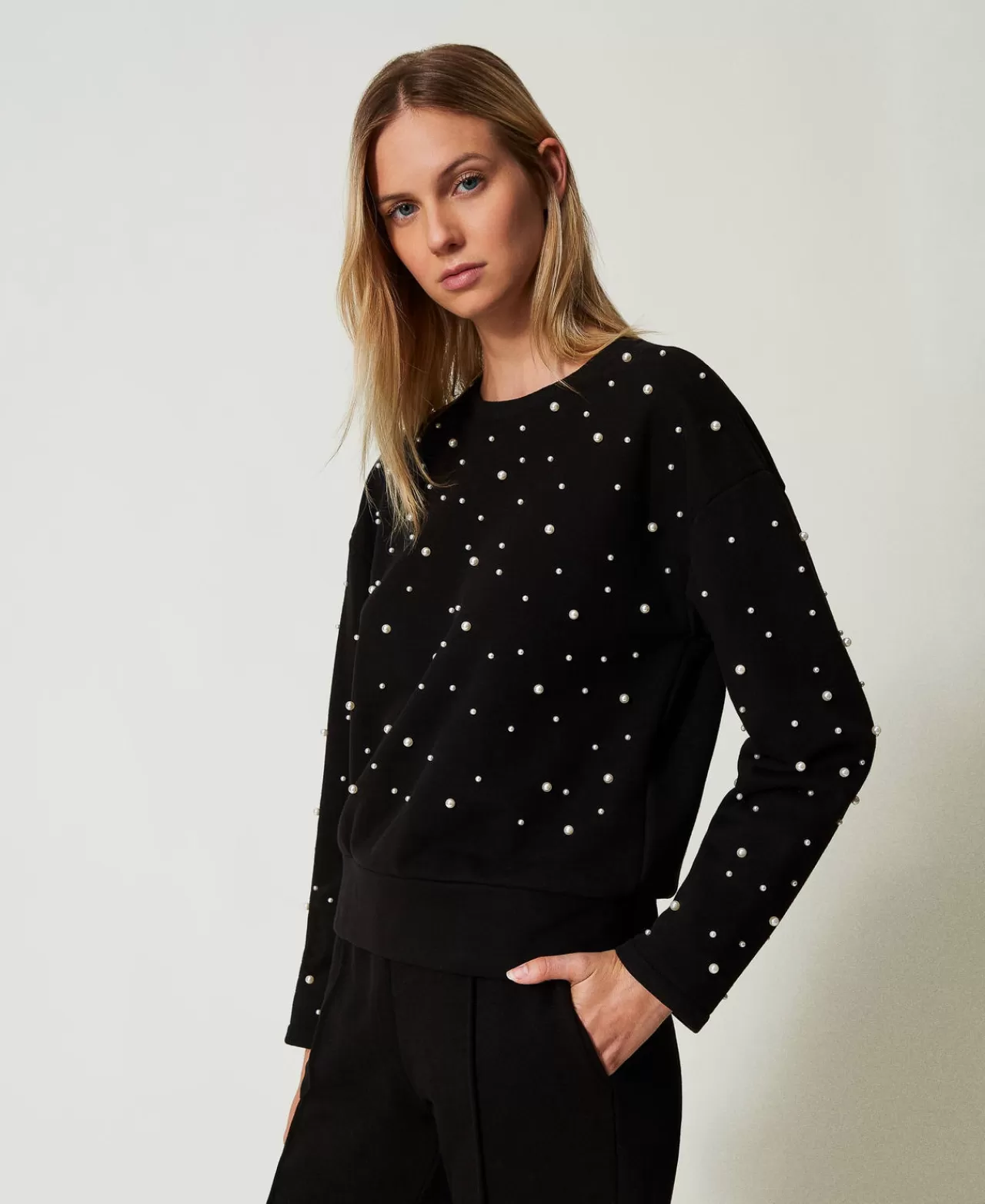 Felpe | TWINSET Milano Felpa Girocollo Con Perle Nero