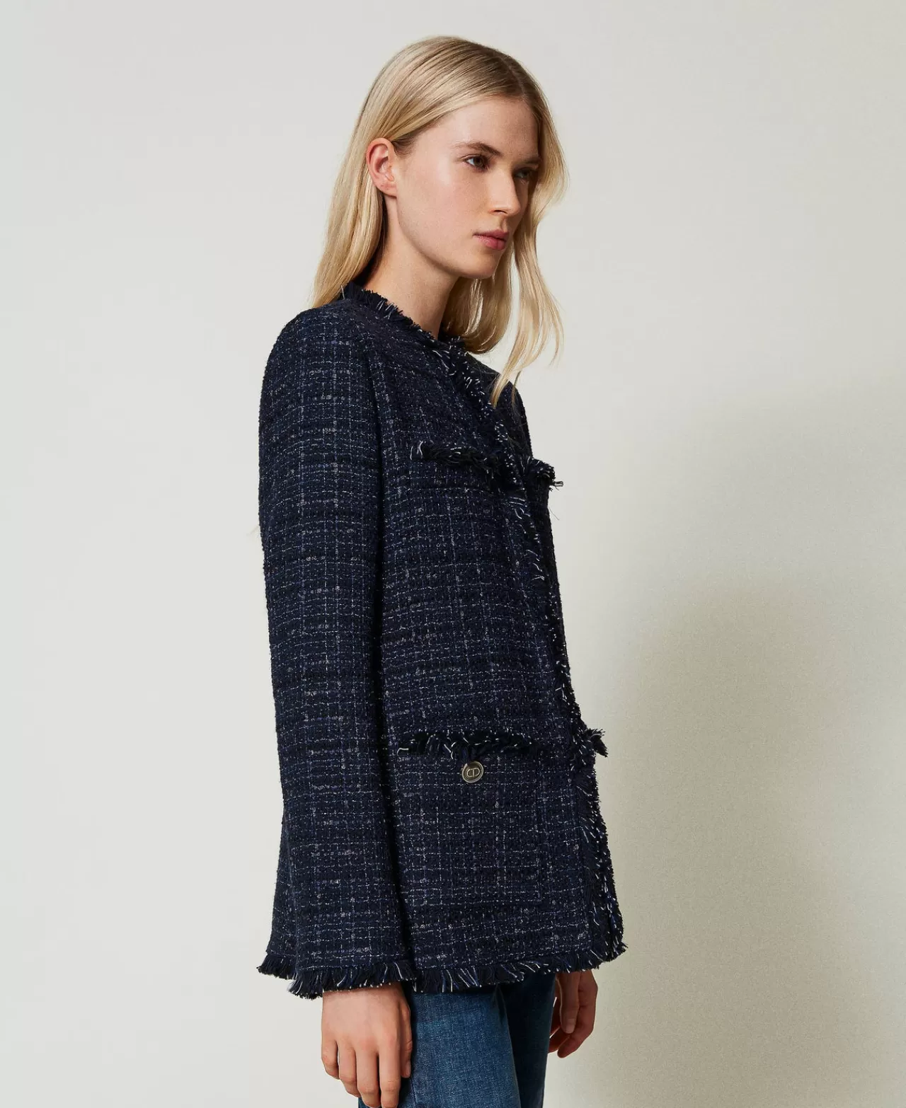 Giacche E Piumini | Blazer | TWINSET Milano Giacca Bouclé Con Bottoni Logati Bouclè Blue Denim / Nero