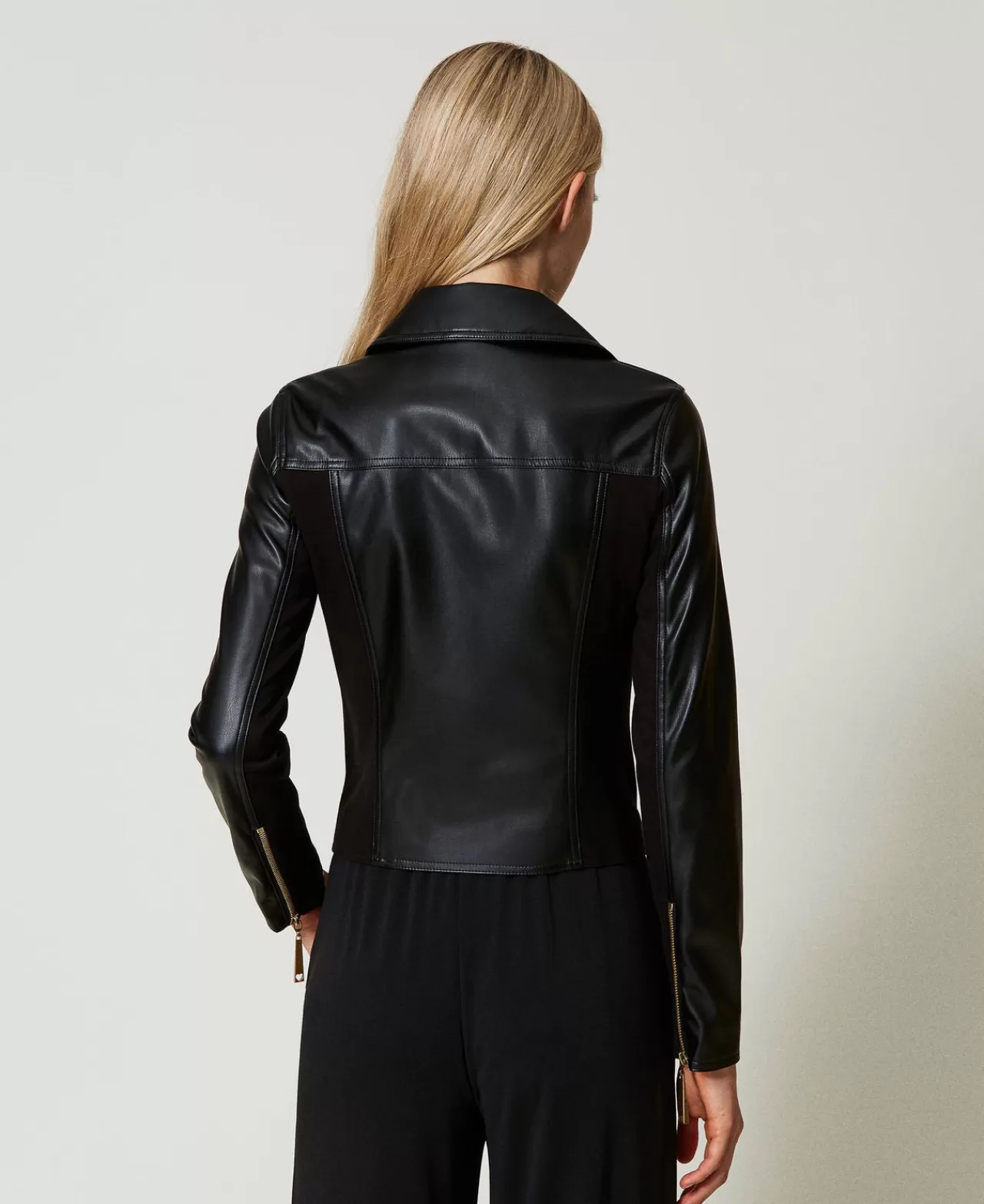 Giacche E Piumini | TWINSET Milano Giacca Chiodo Effetto Pelle Con Volant Nero