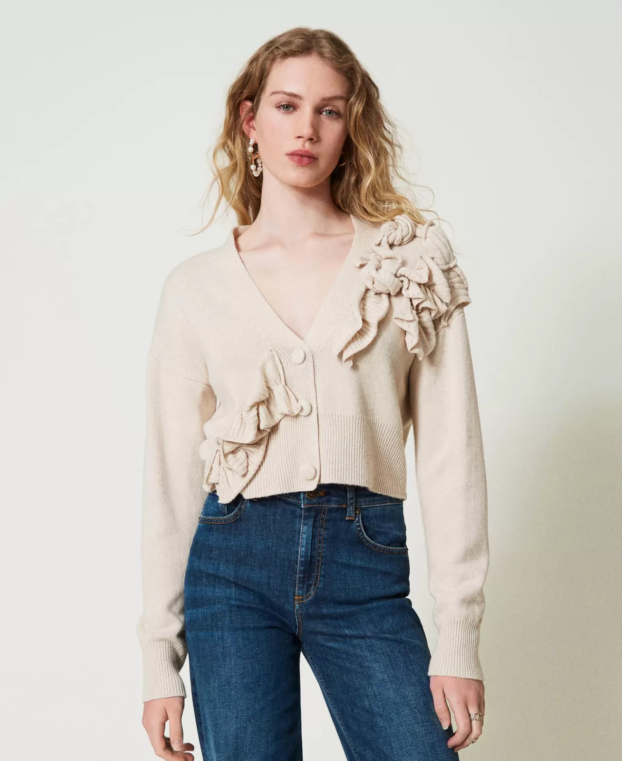 Maglie E Cardigan | TWINSET Milano Cardigan In Misto Lana Con Volant Bianco “Old White”