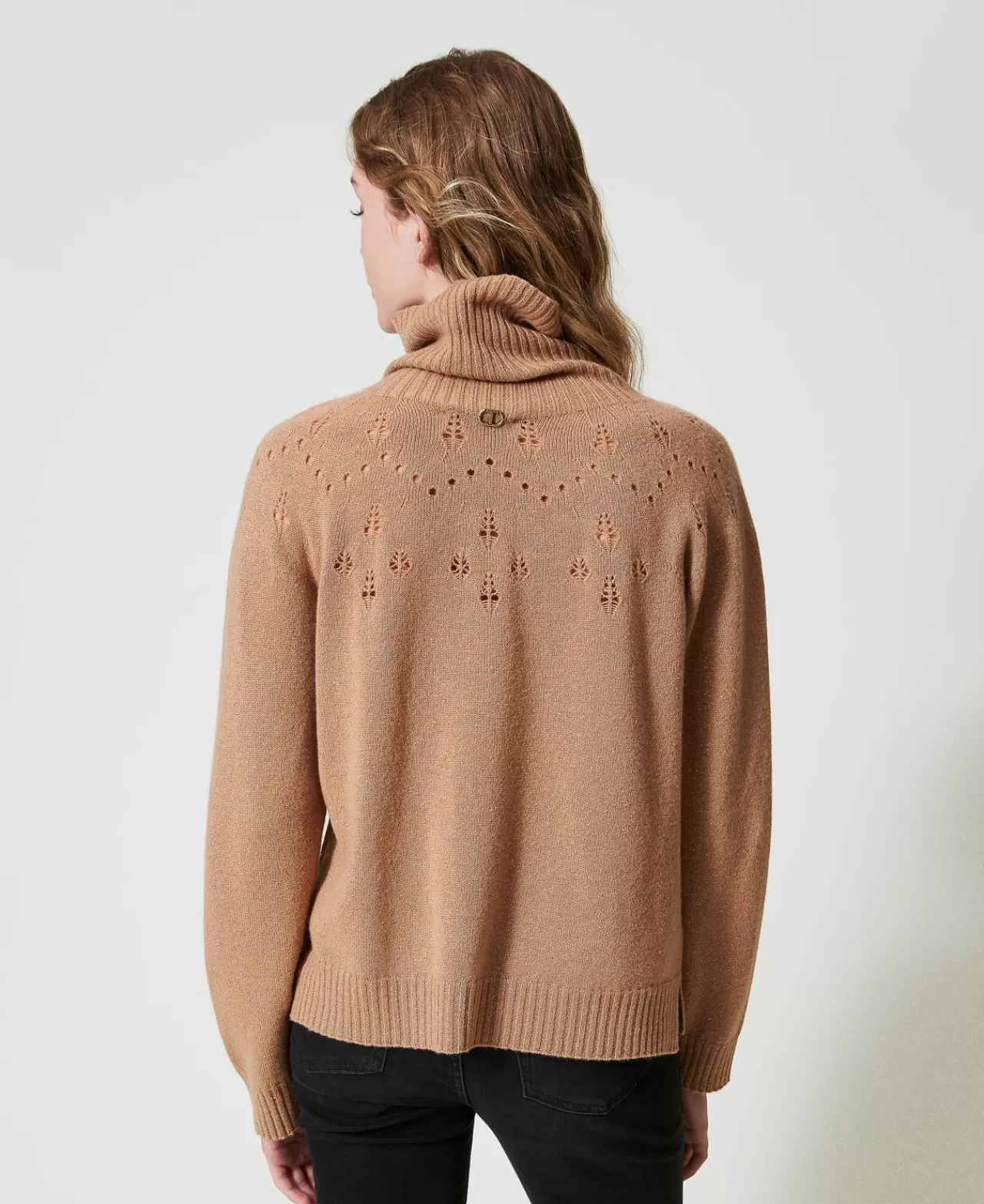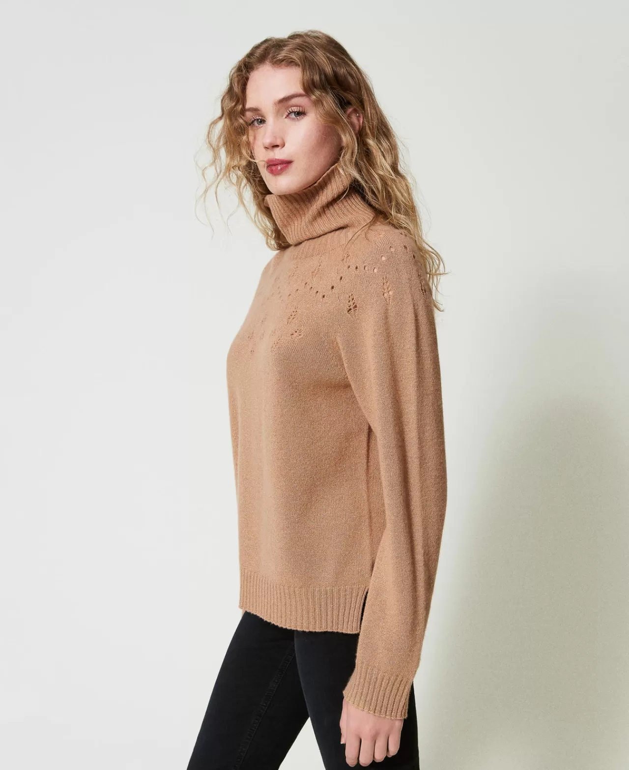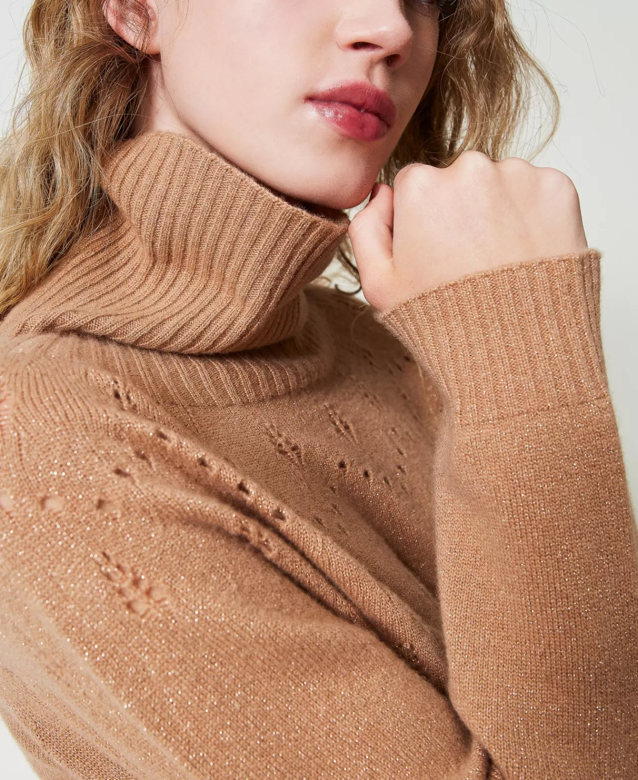 Maglie E Cardigan | TWINSET Milano Maglia Dolcevita In Misto Lana E Lurex Bicolor Marrone “Sandy Brown” / Oro Lurex