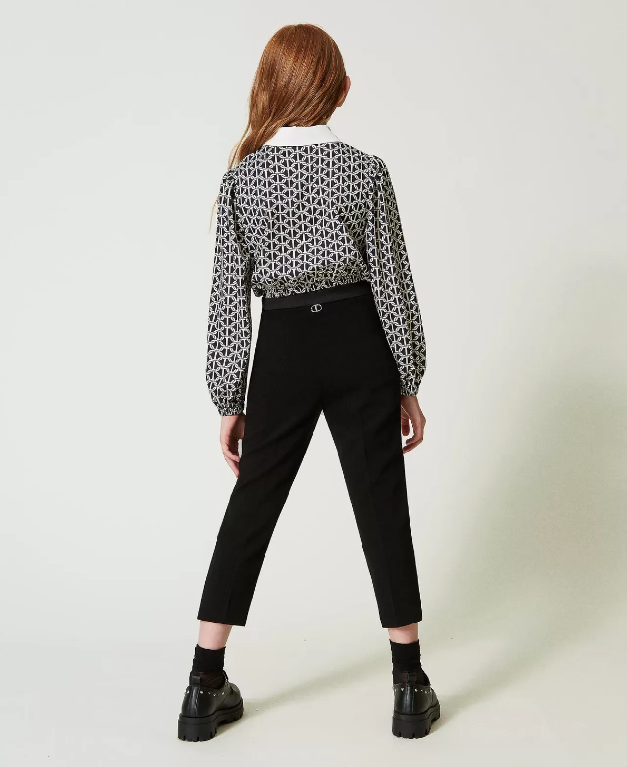 Pantaloni E Jeans | TWINSET Milano Pantaloni A Sigaretta In Flanella Nero