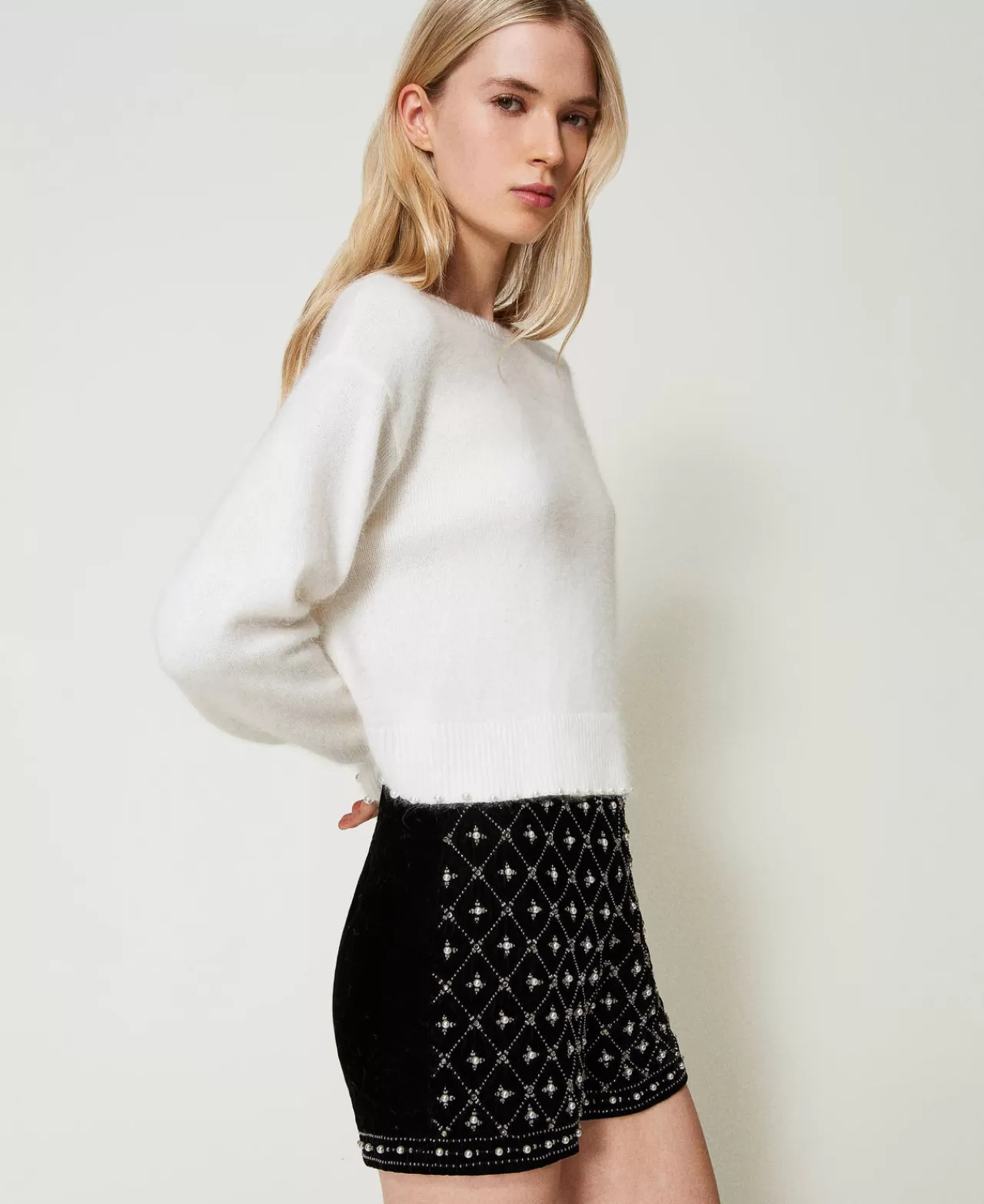 Pantaloni Eleganti | Shorts | TWINSET Milano Shorts In Velluto Ricamato Nero