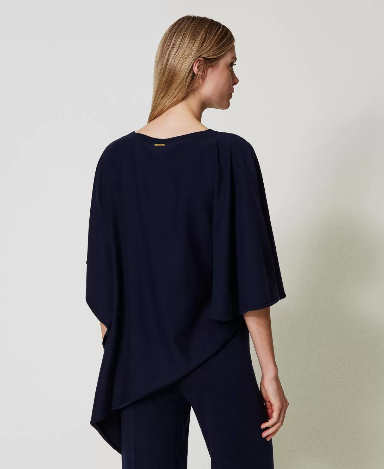 Poncho | TWINSET Milano Poncho Asimmetrico In Maglia Blu Blackout