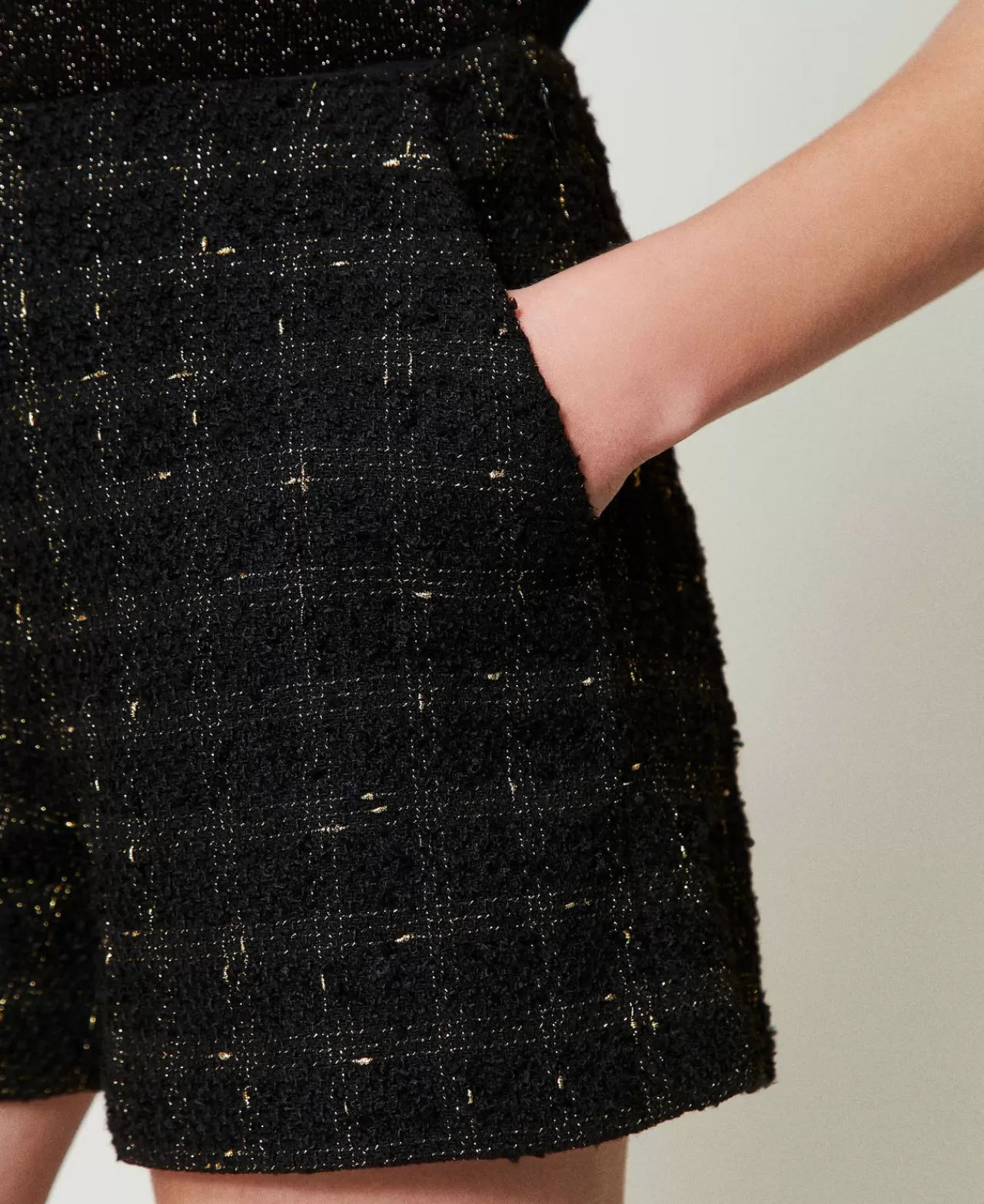 Shorts | TWINSET Milano Shorts Bouclé A Disegno Check Bouclè Black / Gold