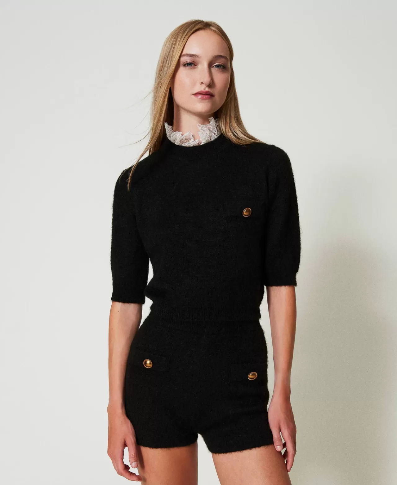 Shorts | TWINSET Milano Shorts ‘Emily’ In Maglia Misto Mohair Nero