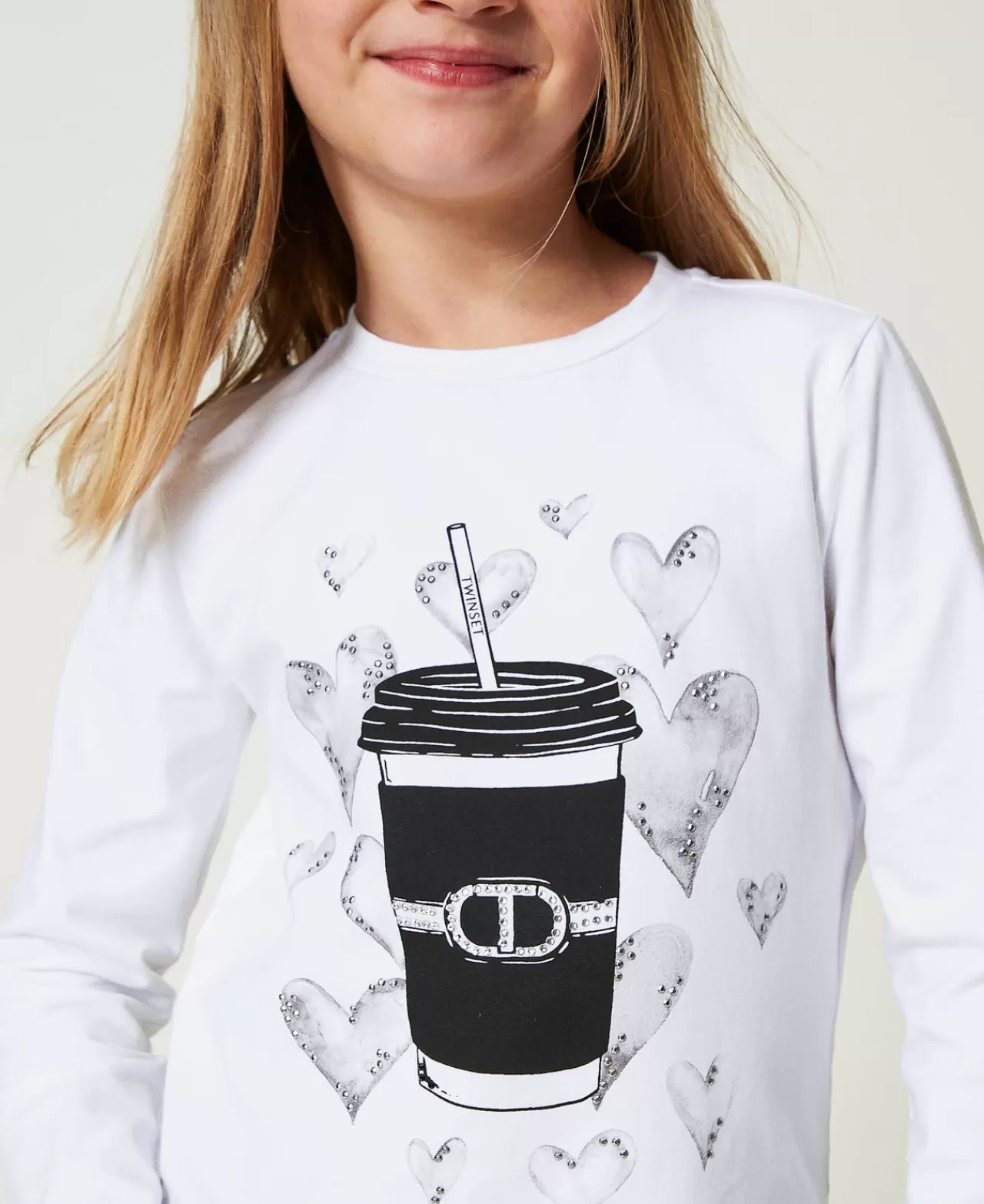 T-Shirt E Top | TWINSET Milano T-shirt Con Stampa E Strass Off White