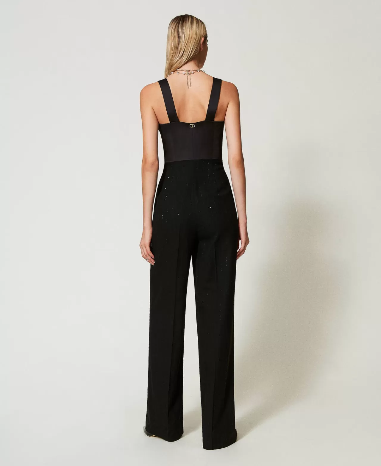 Tute | Vestiti Da Cerimonia | TWINSET Milano Tuta In Raso E In Panno Con Paillettes Nero