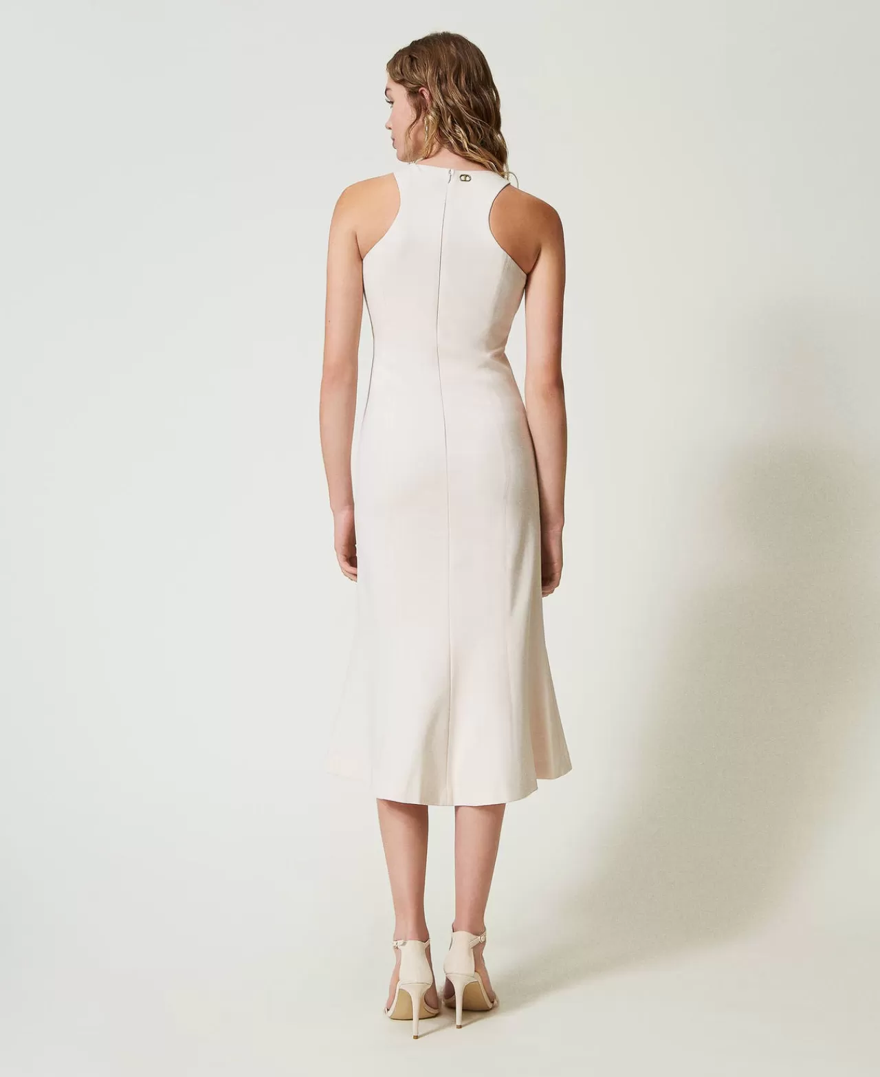 Vestiti Da Cerimonia | Vestiti Eleganti | TWINSET Milano Abito Longuette Con Scollatura All’americana Bianco “Old White”