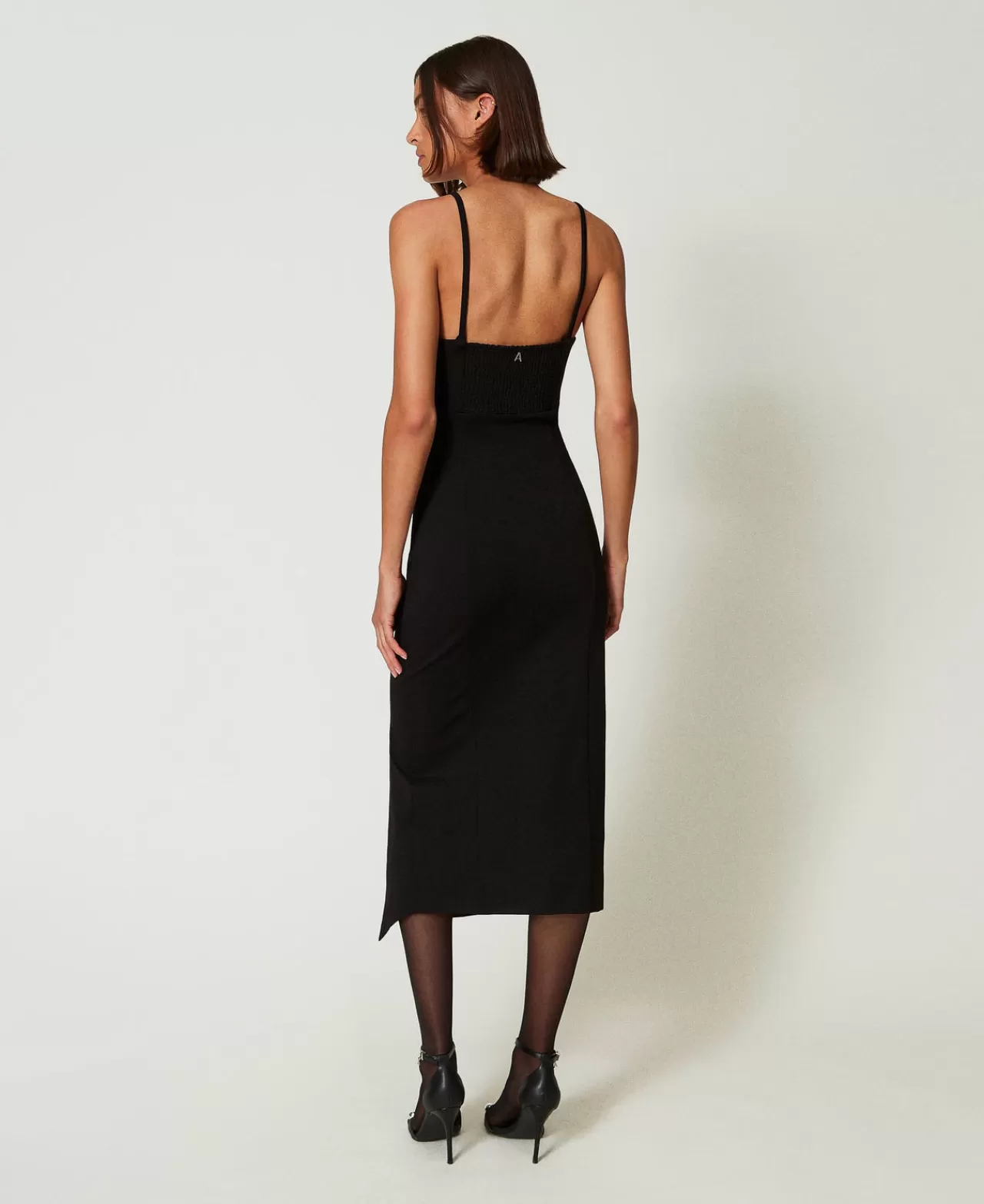 Vestiti Da Cerimonia | Vestiti Eleganti | TWINSET Milano Abito Longuette Con Spacco Nero