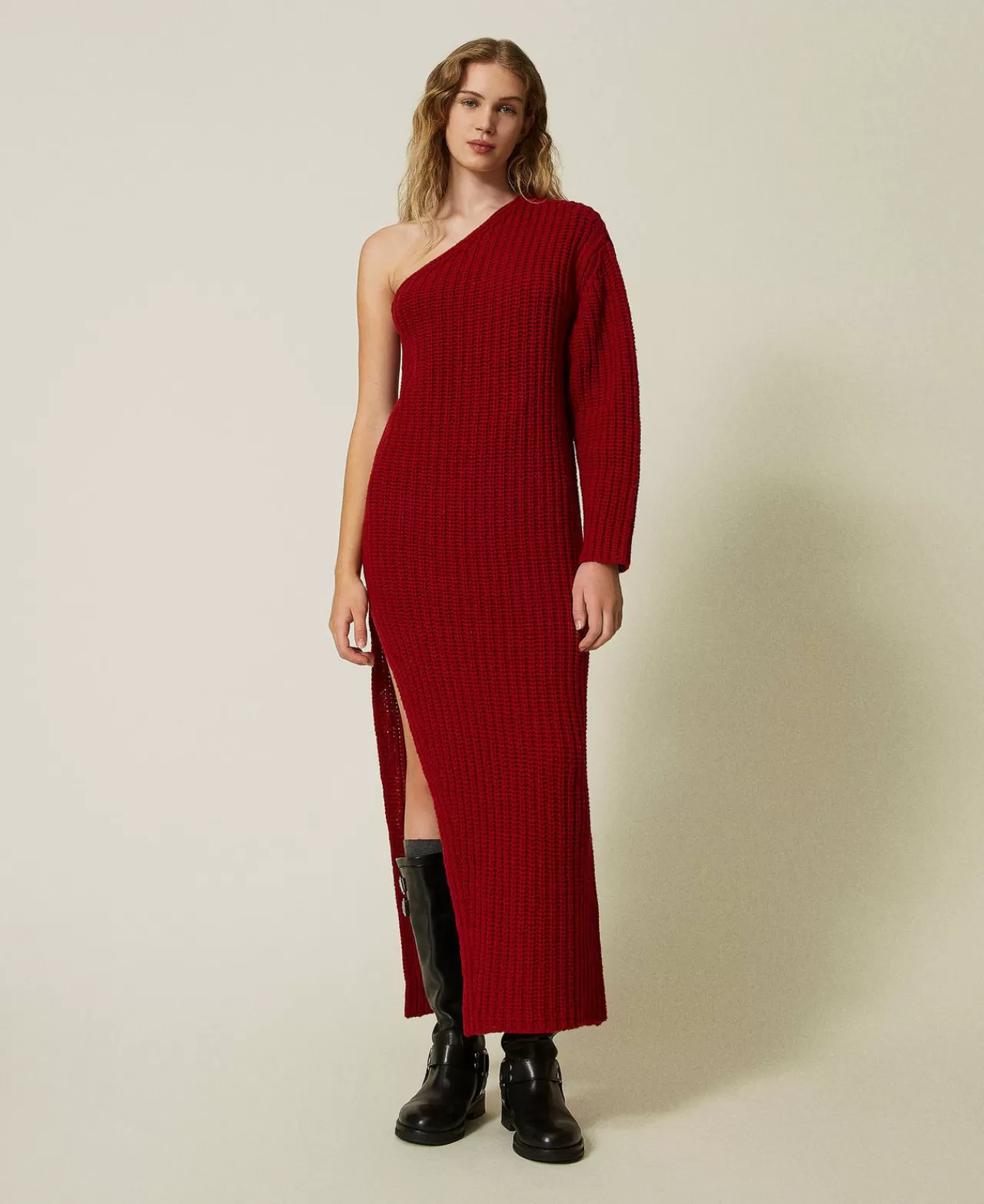 Vestiti Eleganti | Vestiti In Maglia | TWINSET Milano Abito Lungo ‘Alice’ In Maglia Rosso Veneziano