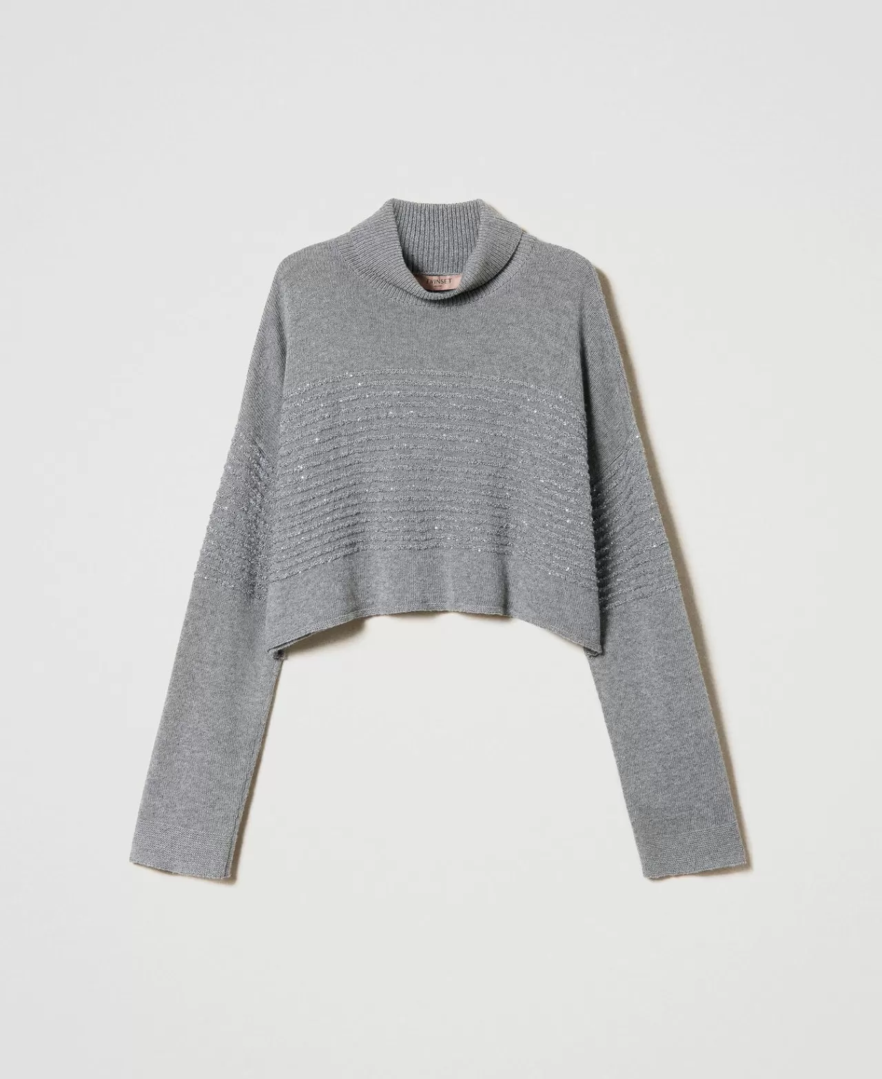 Maglie E Cardigan | TWINSET Milano Maglia In Misto Lana Con Paillettes Warm Melange Gray