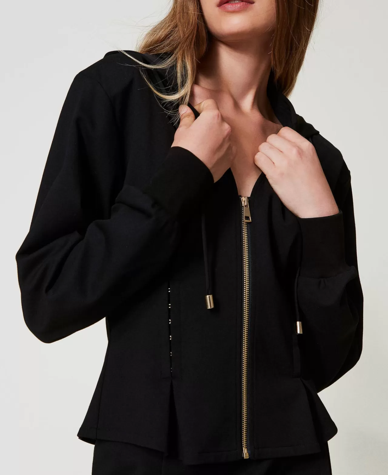 Felpe | Maglie E Cardigan | TWINSET Milano Maglia Con Cappuccio E Perle Bianco Antique White