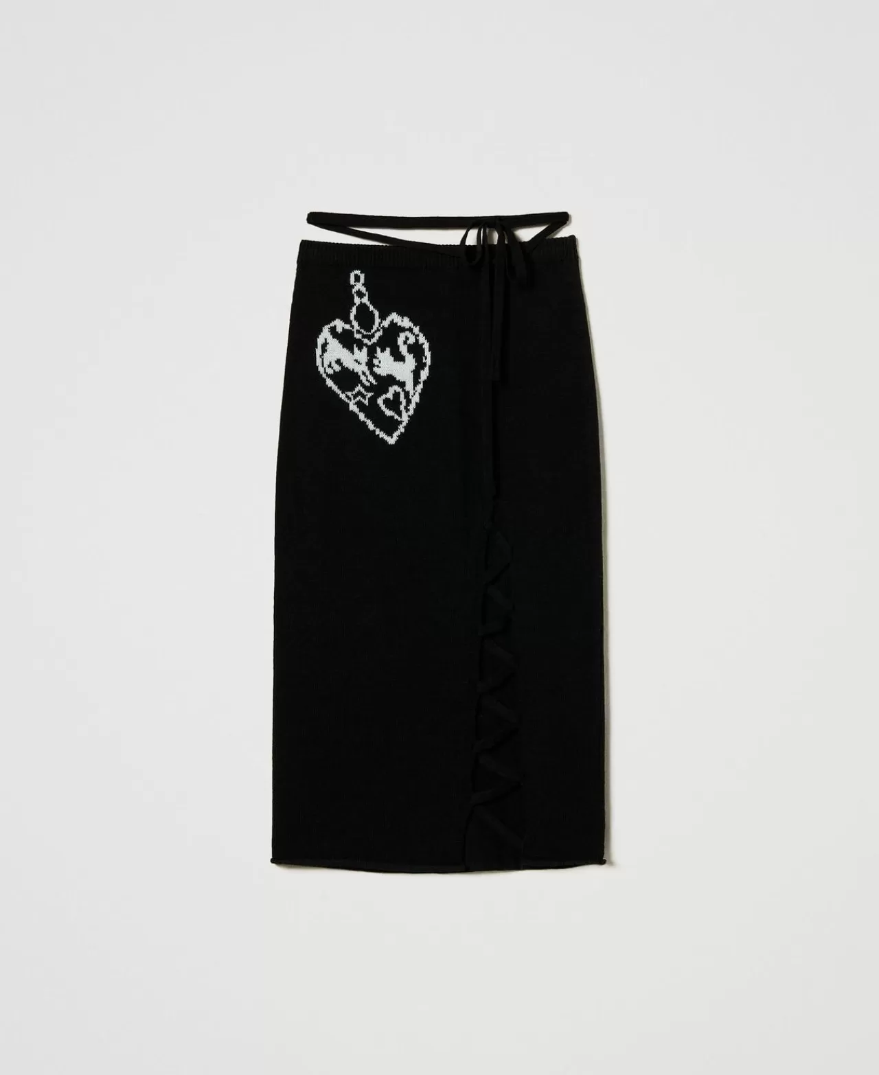 Gonne | TWINSET Milano Gonna Longuette Jacquard In Filato Treeblend Intarsio Nero / Bianco Neve