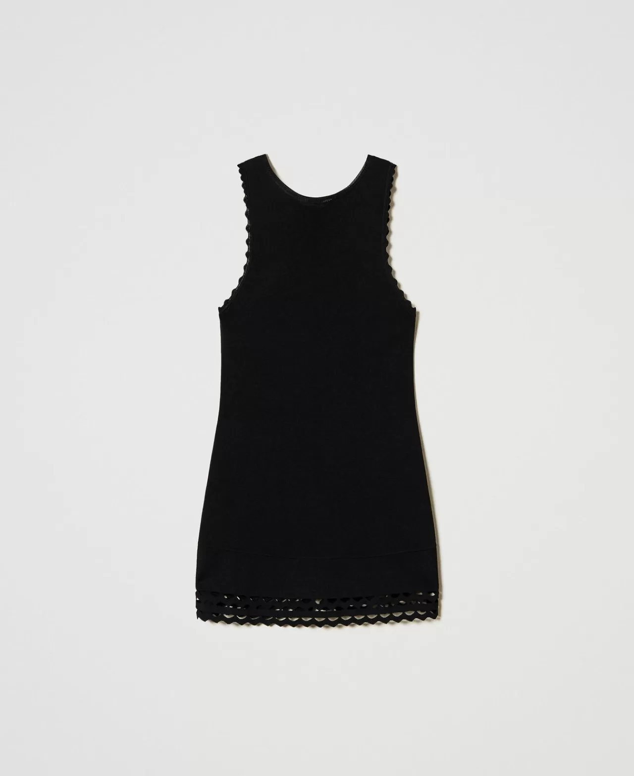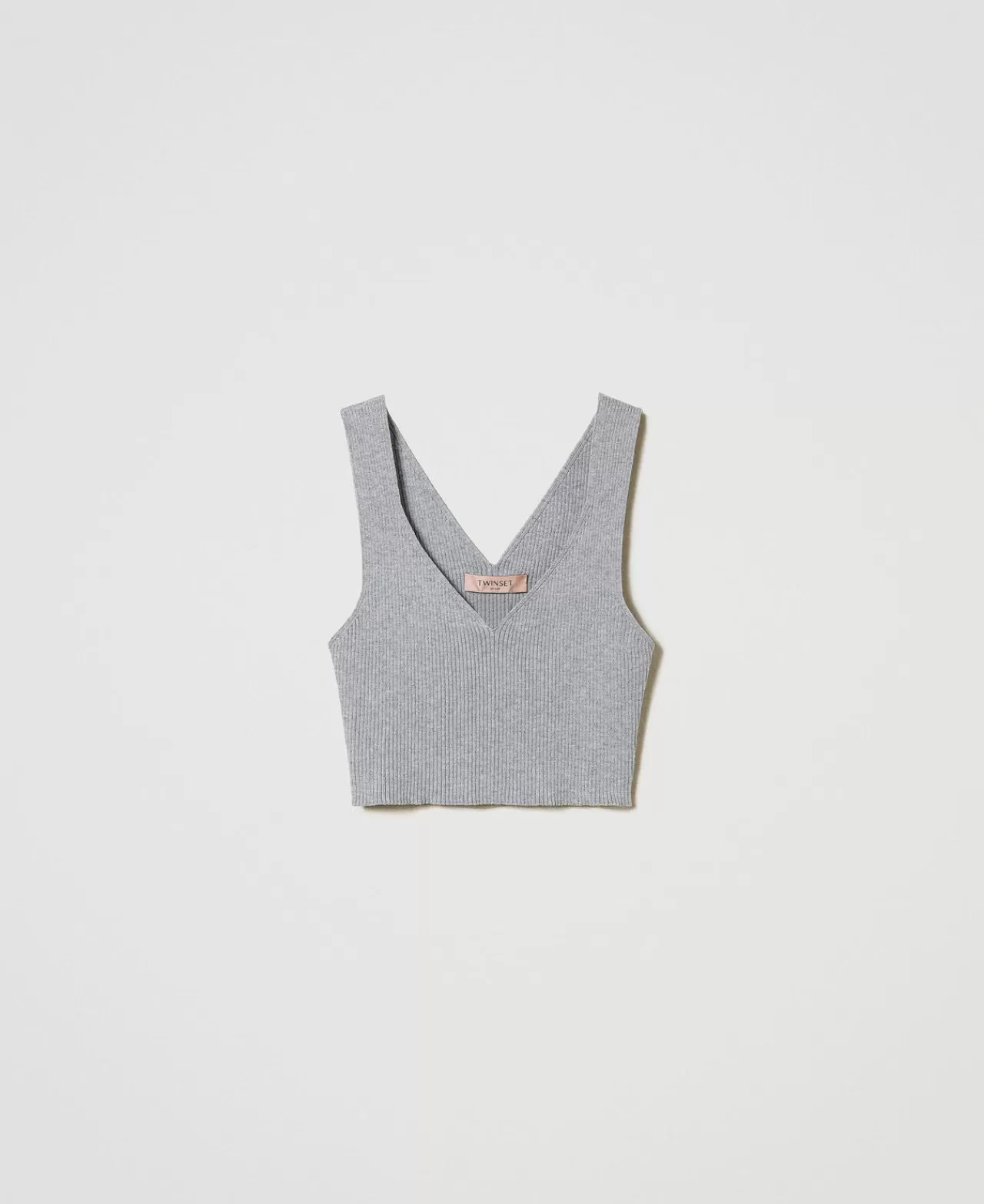 T-Shirt E Top | TWINSET Milano Top Cropped Jacquard In Filato Treeblend Jacquard Cats Neve / Nero