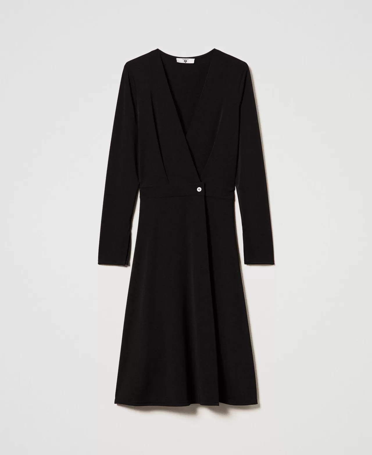 Vestiti In Maglia | Vestiti Lunghi | TWINSET Milano Abito Lungo In Maglia Con Oblò Nero