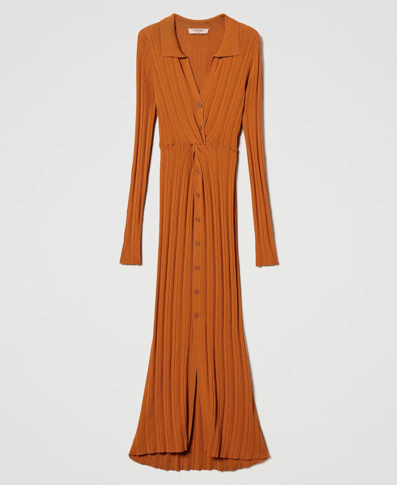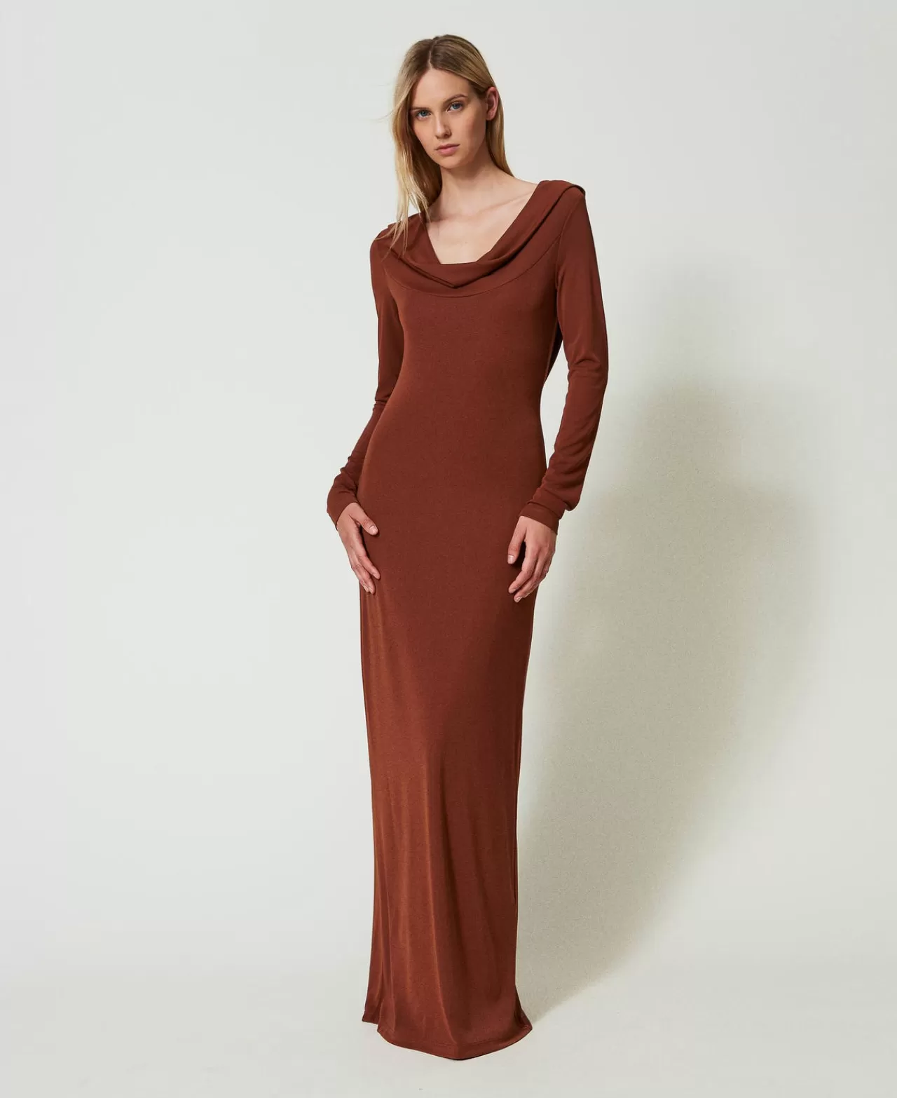 Vestiti Lunghi | TWINSET Milano Abito Lungo Con Collo Drappeggiato Marrone “Terra Senese”