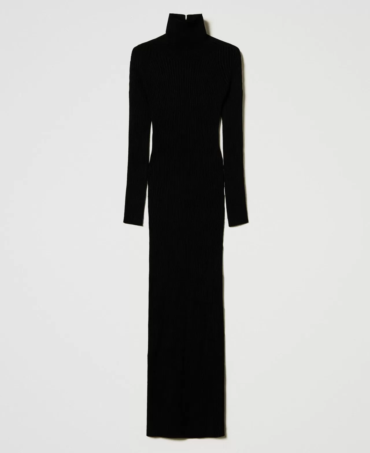Vestiti In Maglia | Vestiti Lunghi | TWINSET Milano Abito Lungo In Maglia A Costine Con Cut-out Nero