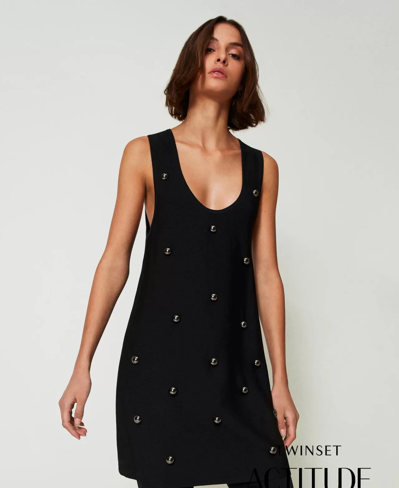 Vestiti In Maglia | Vestiti Corti | TWINSET Milano Abito Corto In Maglia Con Borchie Nero