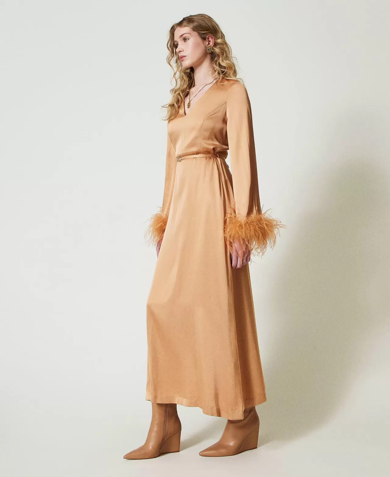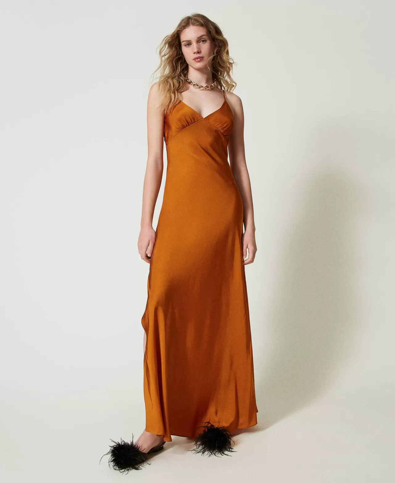 Vestiti Da Cerimonia | Vestiti Eleganti | TWINSET Milano Abito Lungo In Raso A Portafoglio Bordeaux