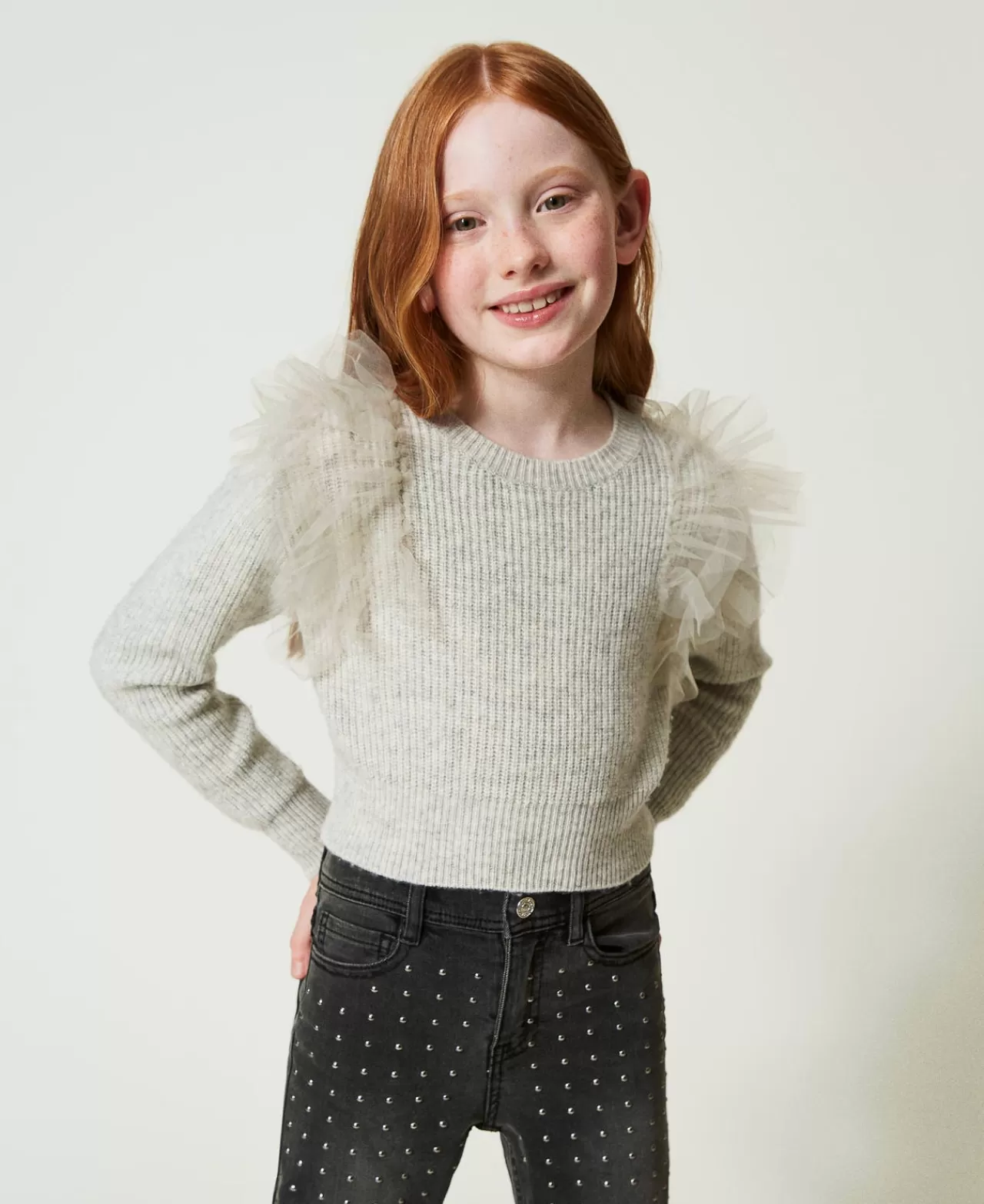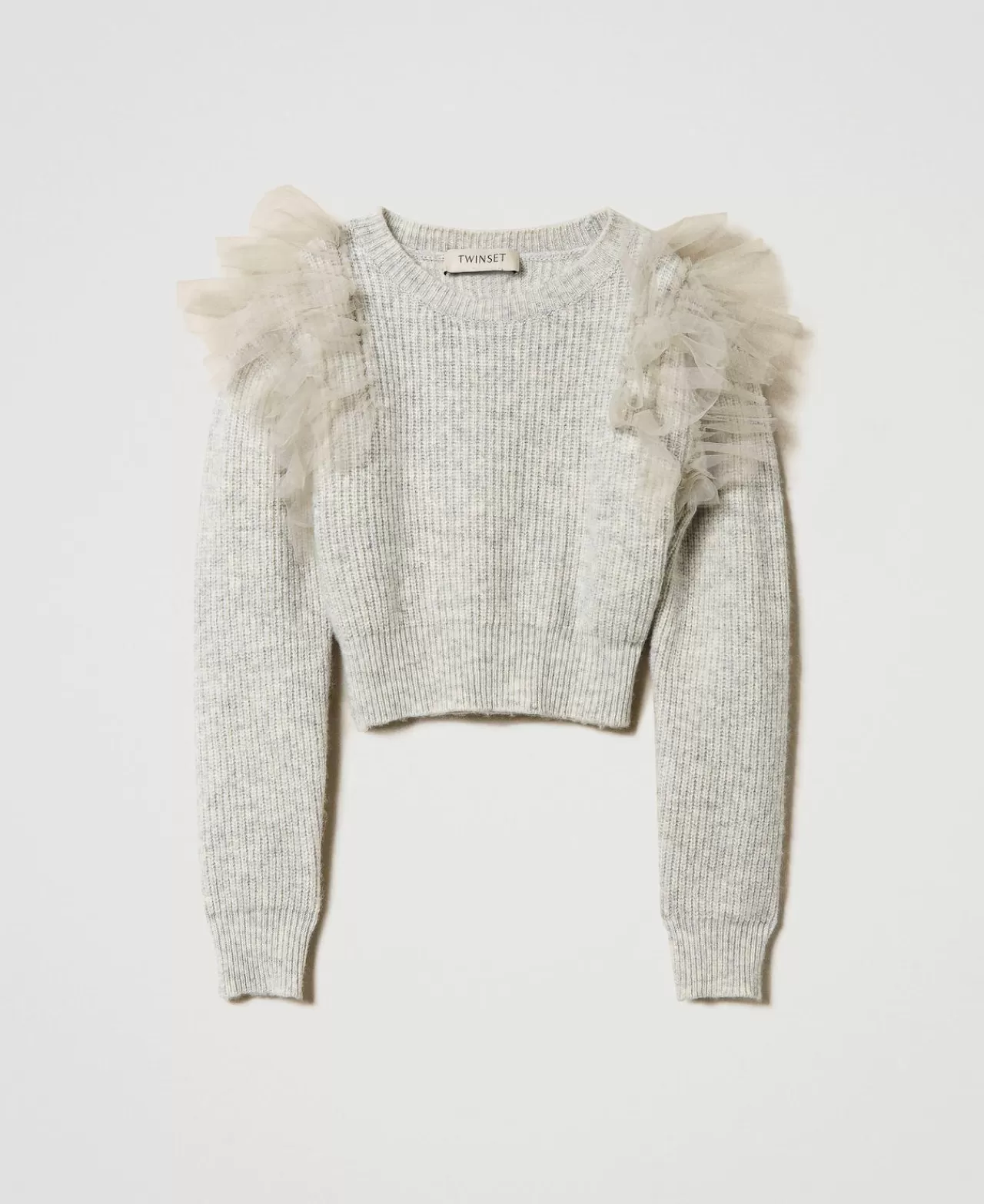 Maglie E Cardigan | TWINSET Milano Maglia Regular Con Balze In Tulle Grigio Mélange