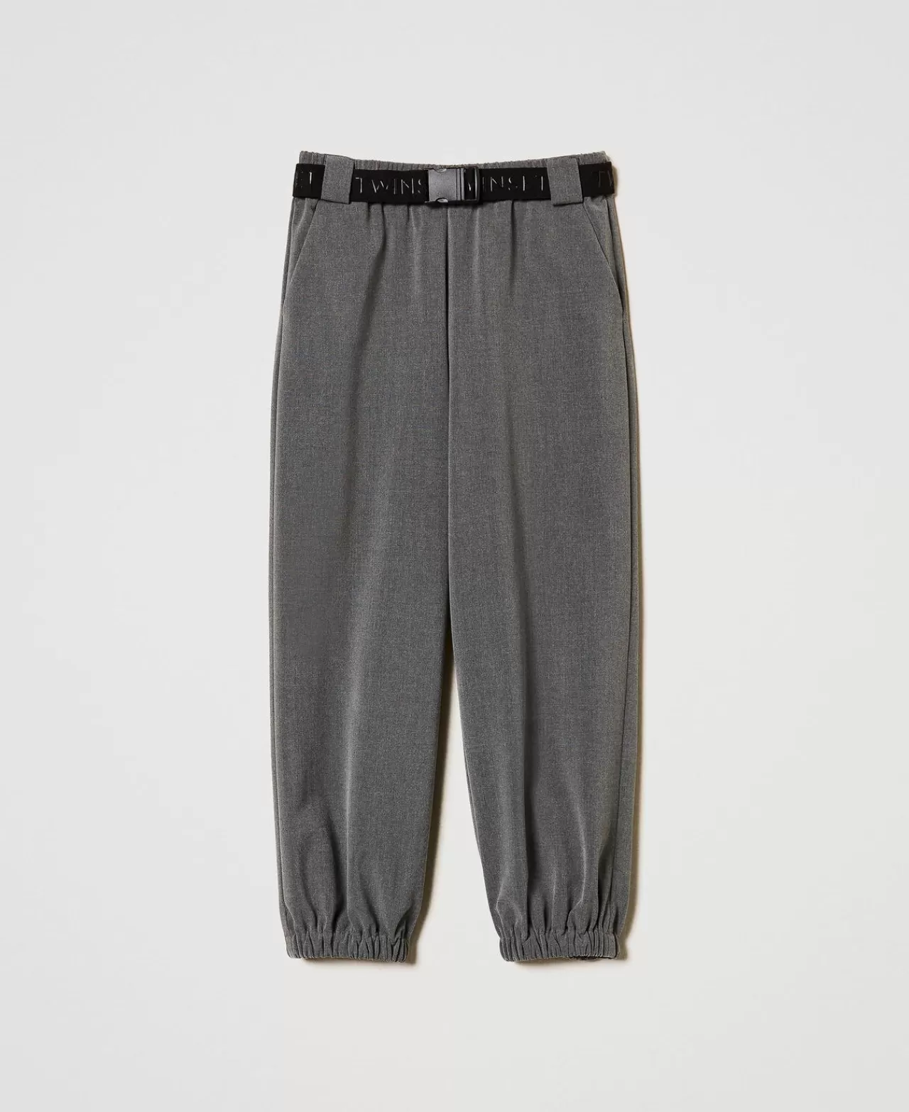 Pantaloni E Jeans | TWINSET Milano Pantaloni Joggers In Flanella Con Cintura Grigio Medio Melange