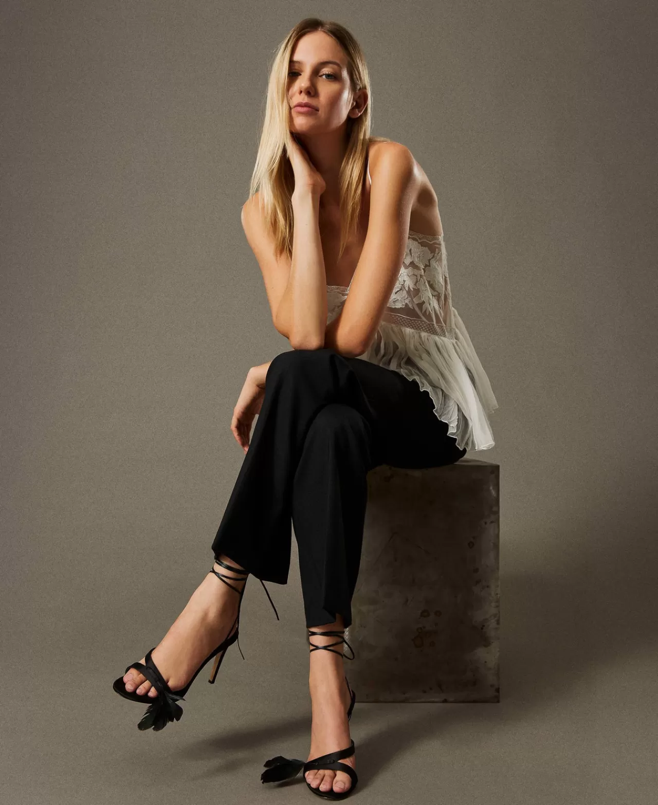 Scarpe Con Tacco | Decolleté E Sandali | TWINSET Milano Sandali Con Lacci E Piume Nero