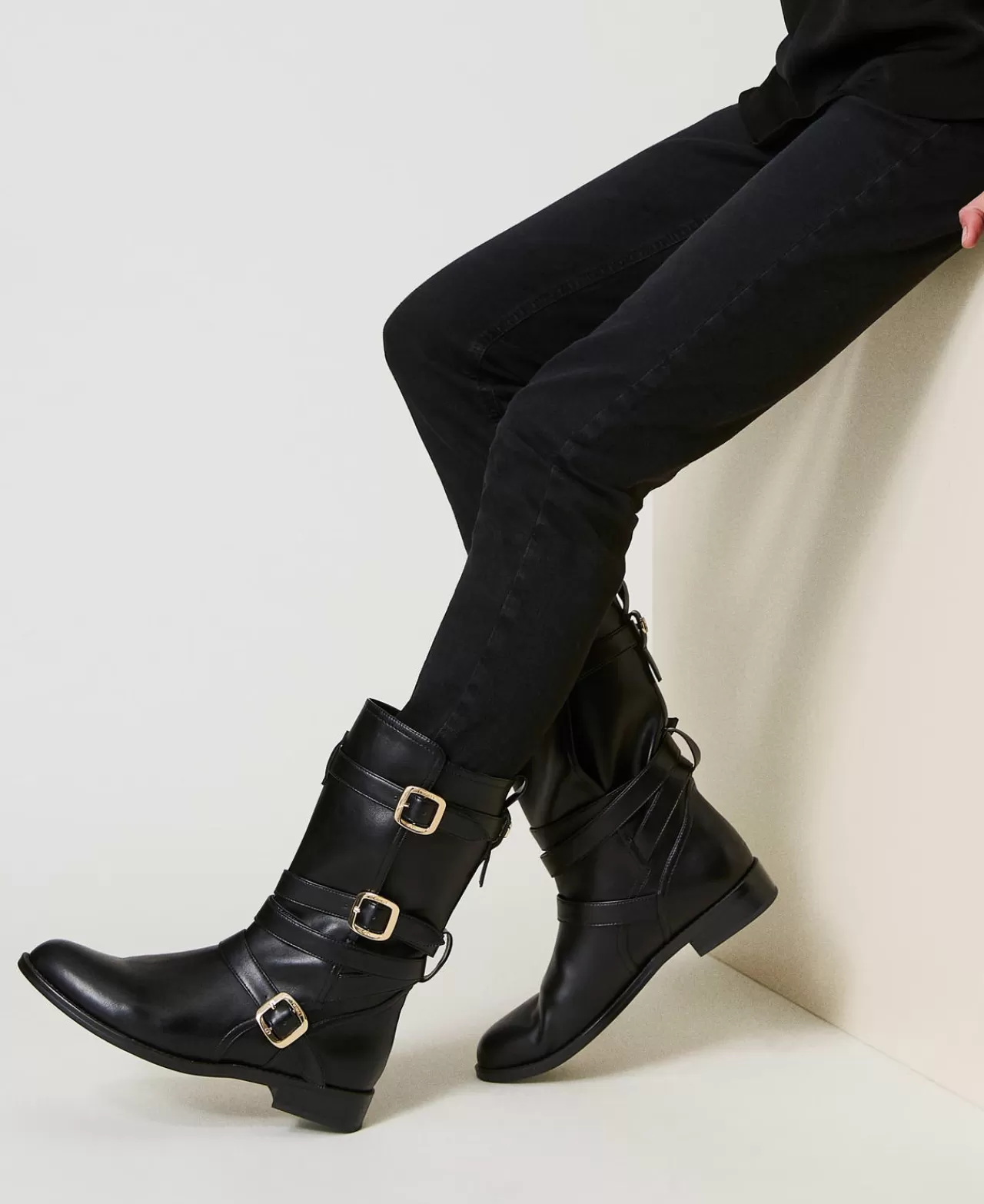 Scarpe Basse | Stivali E Stivaletti | TWINSET Milano Stivali Chelsea In Pelle Con Oval T Nero